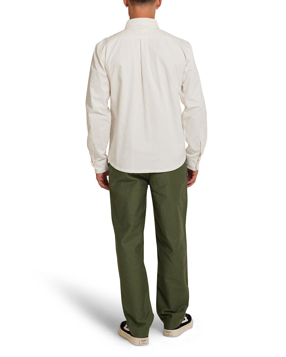 We’ve never met Pearl's mum but boy can she make buttons. The Phoenix is a regular fit long sleeve shirt with button down collar, a woven label on the pocket and mother of pearl buttons. Cotton chambray fabrication with heavy enzyme stone wash. Available in dirty white or indigo.