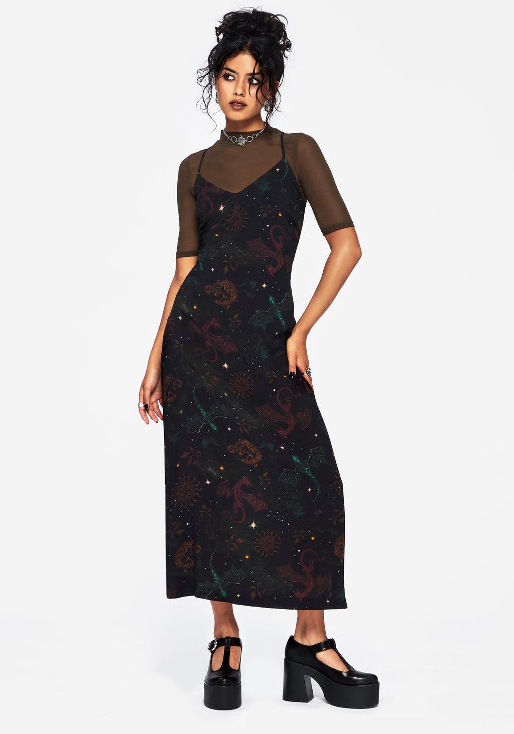 Phoenix Dragon Printed Cami Midi Dress
