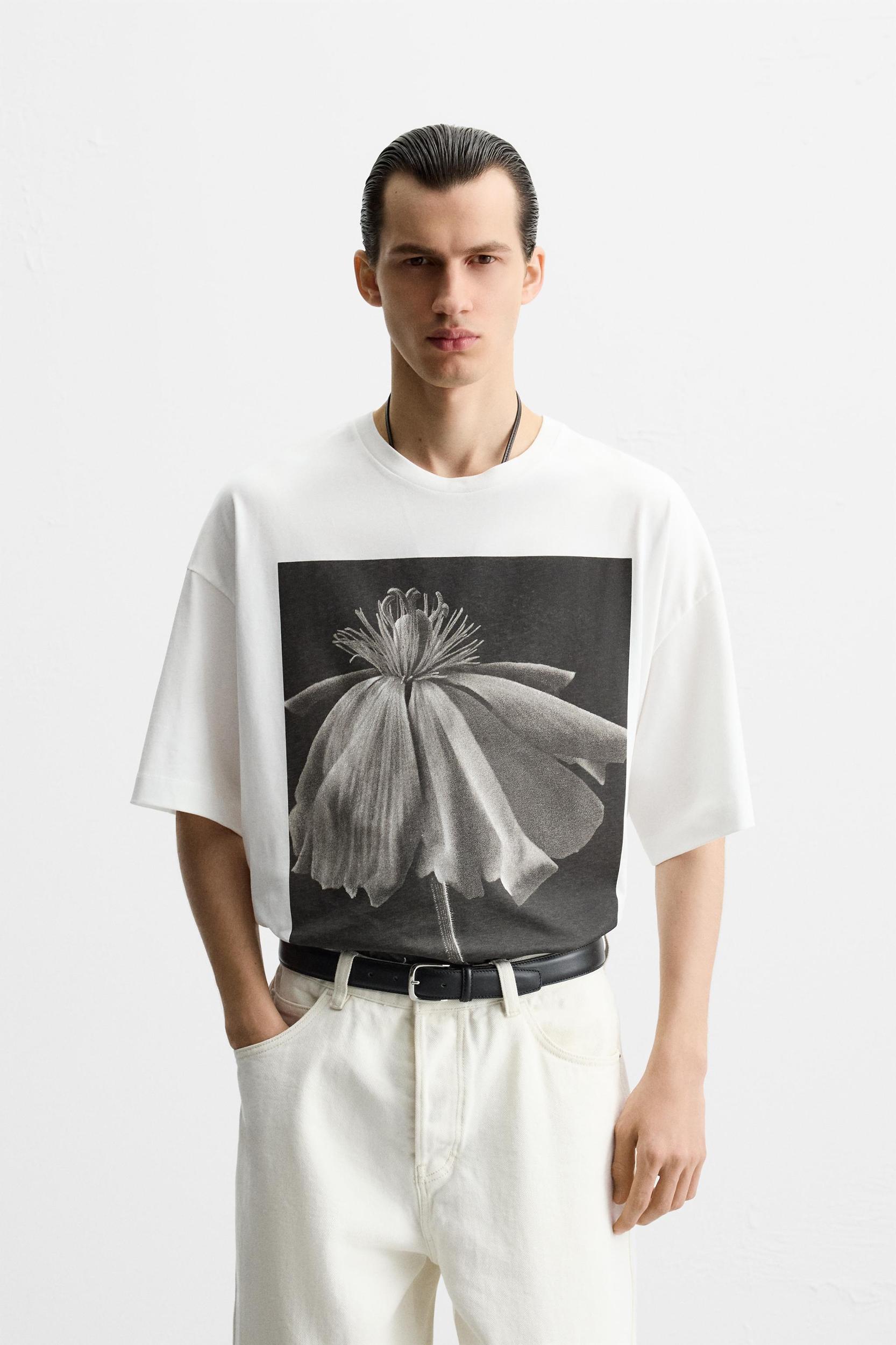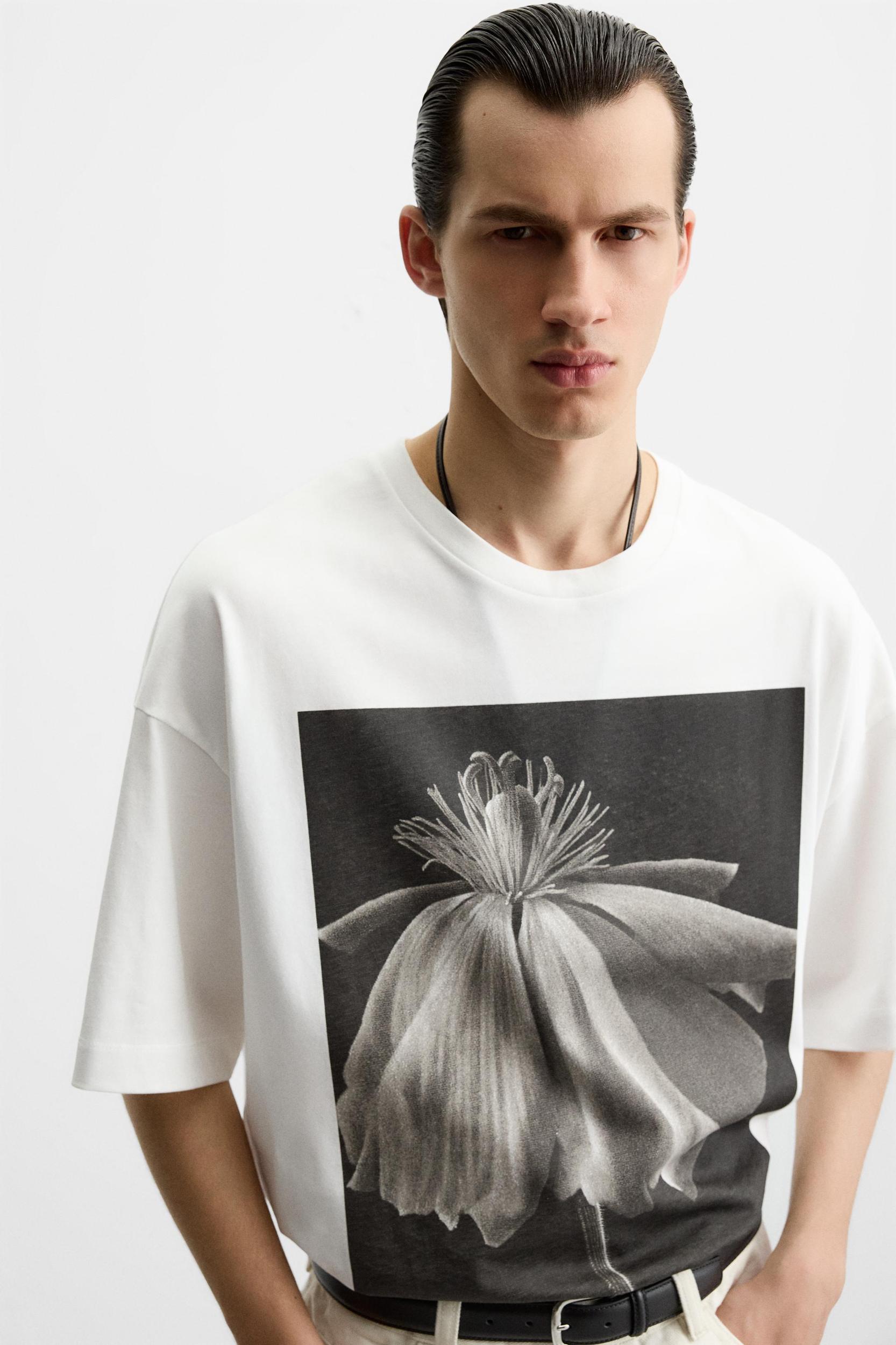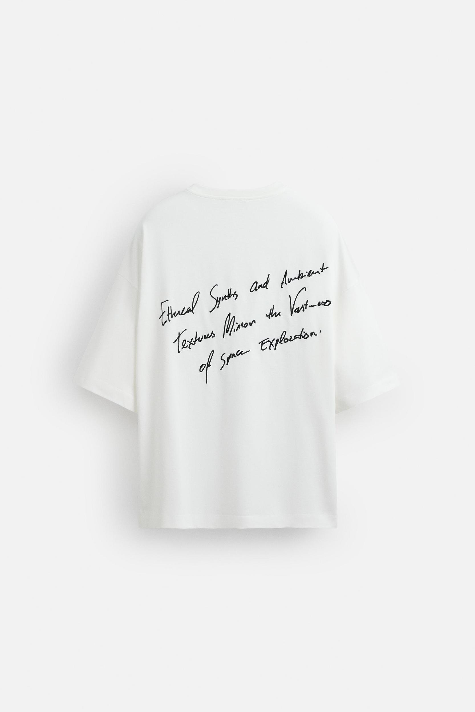 Regular fit T-shirt. Round neck and short sleeves. Contrasting combined photographic print on the front. Embroidered text detail on the back.