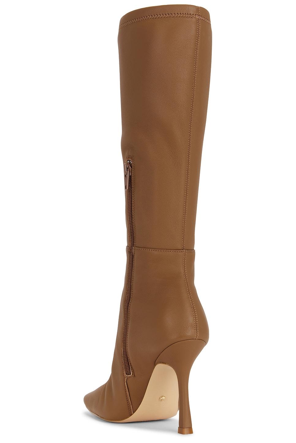 Leather upper with manmade sole. Inner side zip closure. Cushioned faux leather footbed and lining. Pointed square toe. Stiletto heel. Approx 90mm/ 3.5 inch heelShaft measures approx 349mm/ 13.75 inch shaft. Made in China. Revolve Style No. RAYE-WZ2973. Manufacturer Style No. RYSH814 H21.