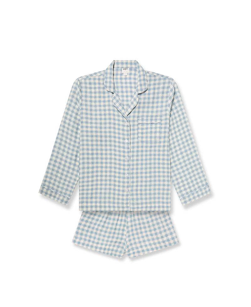 Piglet in Bed Womens Gingham Pajama Shorts Set.Color:Warm Blue Gingham.Size:L.Material:100% Linen.Sleepwear.