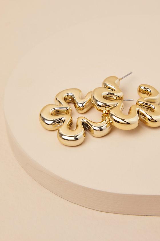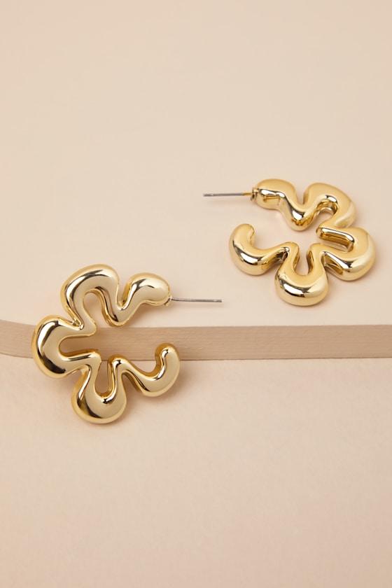 The Lulus Pila Gold Chunky Flower Hoop Earrings will pair seamlessly with your favorite sundress and your chicest pair of shades! Shiny, gold-toned metal shapes these hoop earrings that feature a chunky, flower-shaped silhouette that'll add a trendy finish to any look.