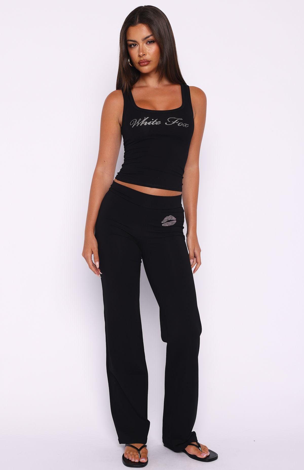 Made for comfy days and cozy moods…Our Pillow Talk Club Straight Leg Pants Black feature a thick elasticated waistband, unlined stretch material for an easy slip on design, diamanté detailing side front and centre back and a wide leg design. Pair with the Pillow Talk Club Tank Top for the cutest matching moment!