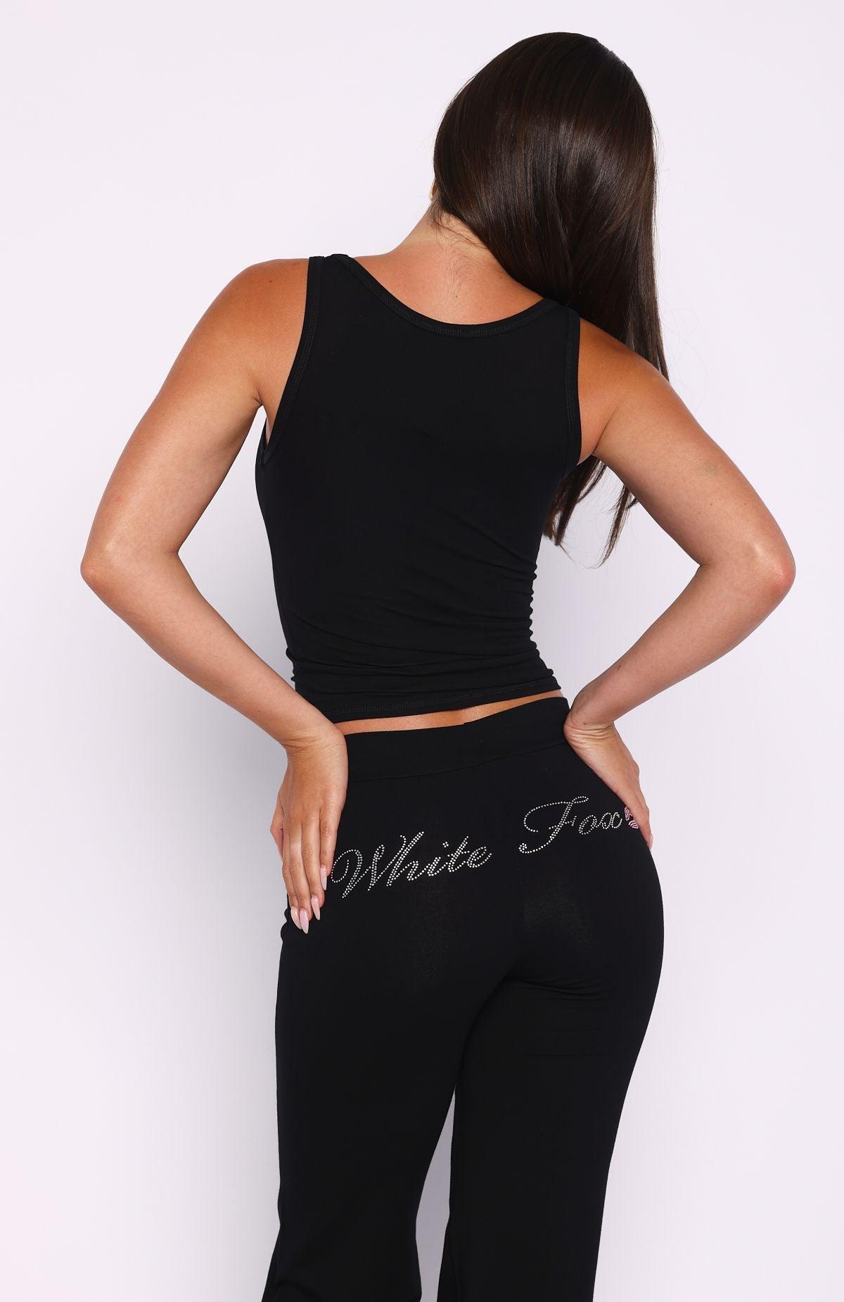 Made for comfy days and cozy moods…Our Pillow Talk Club Tank Top Black features thick shoulder straps, diamanté detailing centre front and stretch material for an easy slip on design. Pair with the Pillow Talk Club Straight Leg Pants for the cutest matching moment!