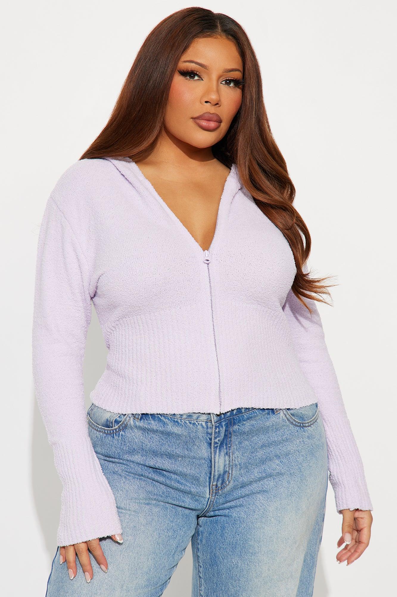 Pillow Talk Zip Front Ribbed Cardigan Sweater - Lavender Female