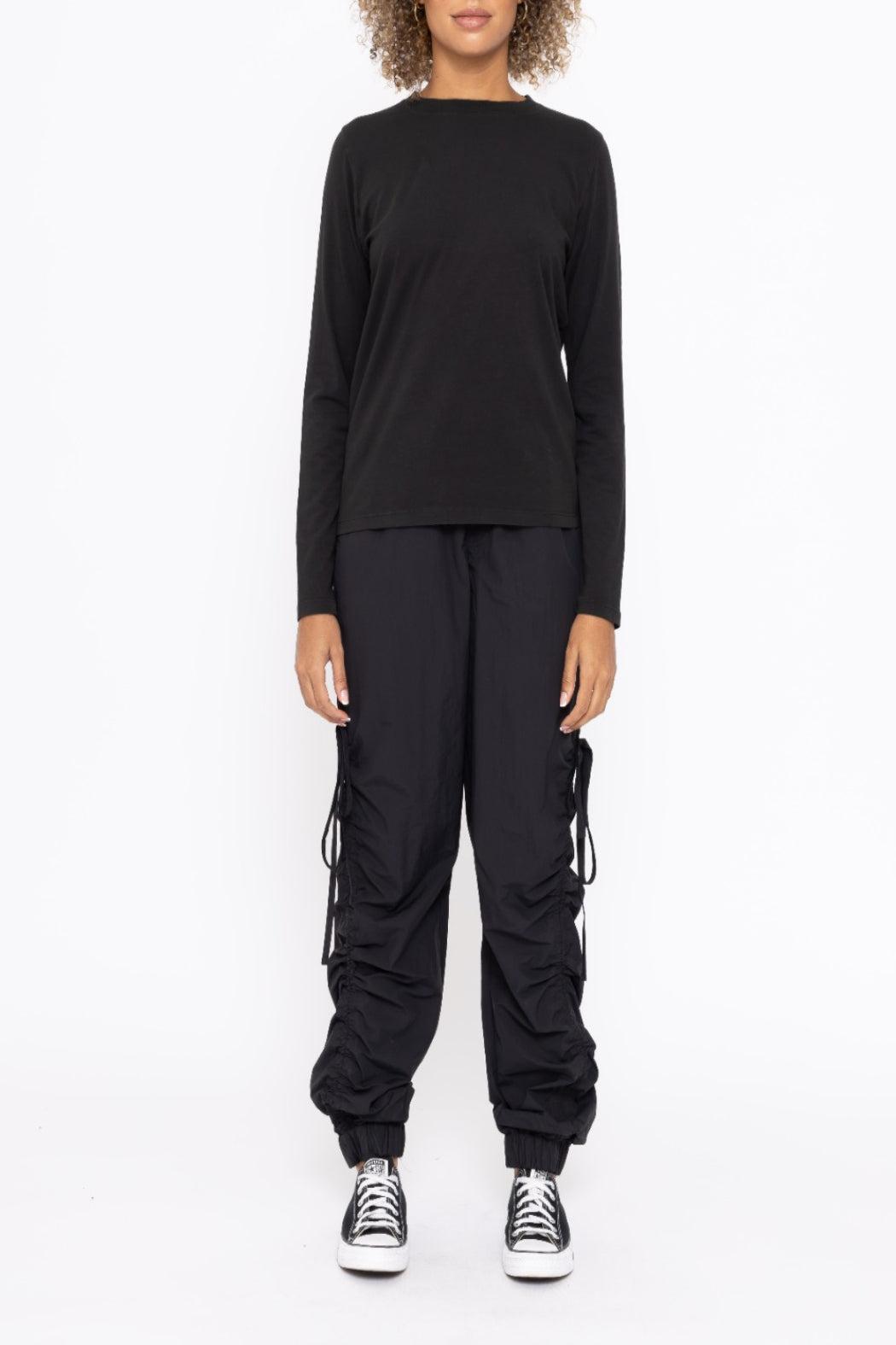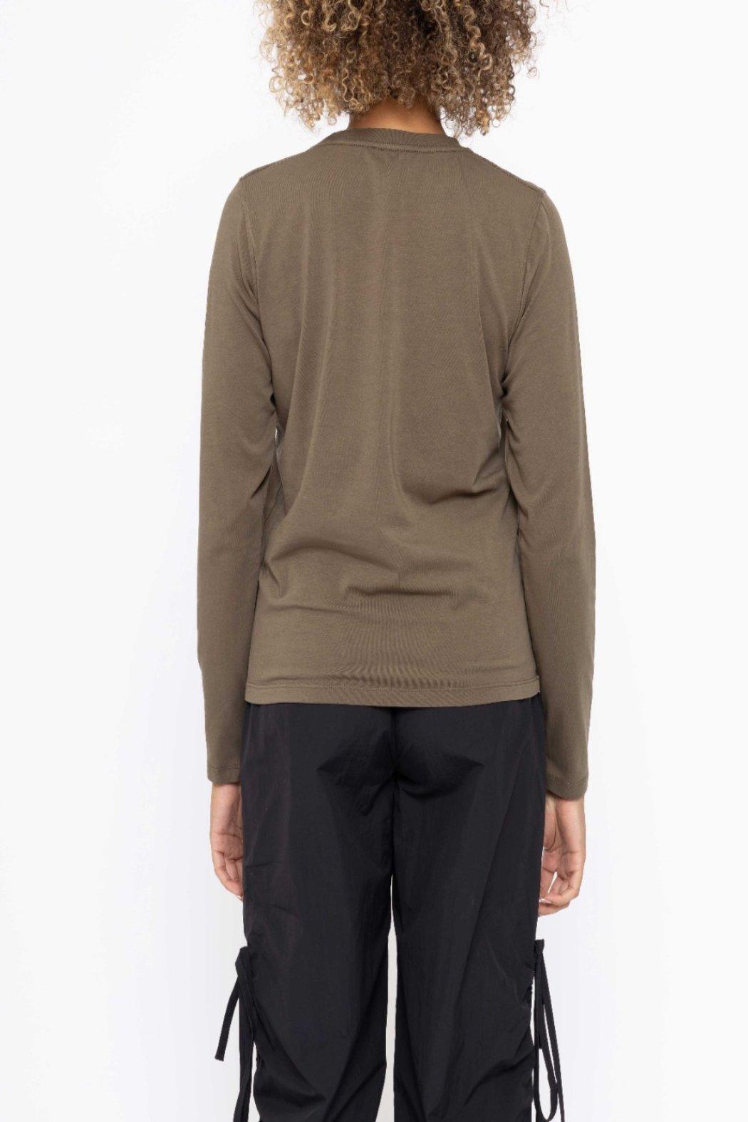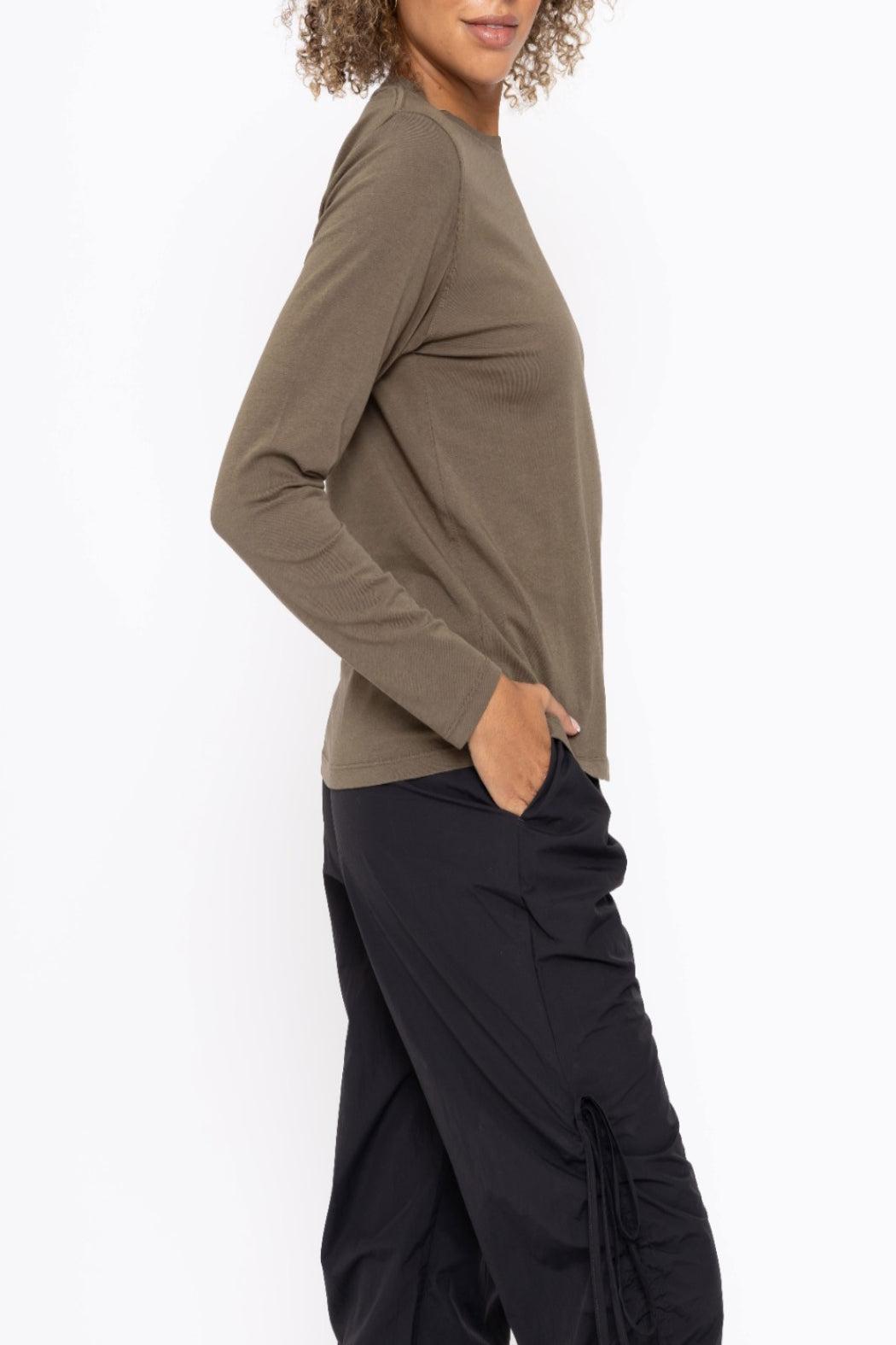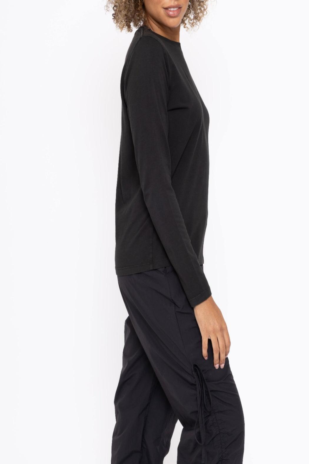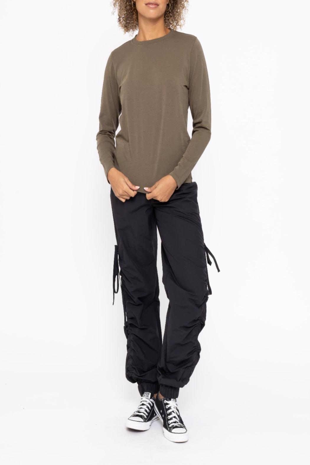 Relax and unwind in our Number One Pima Cotton Casual Top. Featuring a ribbed crew neckline and long sleeves, it's both soft and stretchy. The pigment-dyed fabric gives it a unique color, and the loose fit ensures comfort. Available in both black and ivy green.