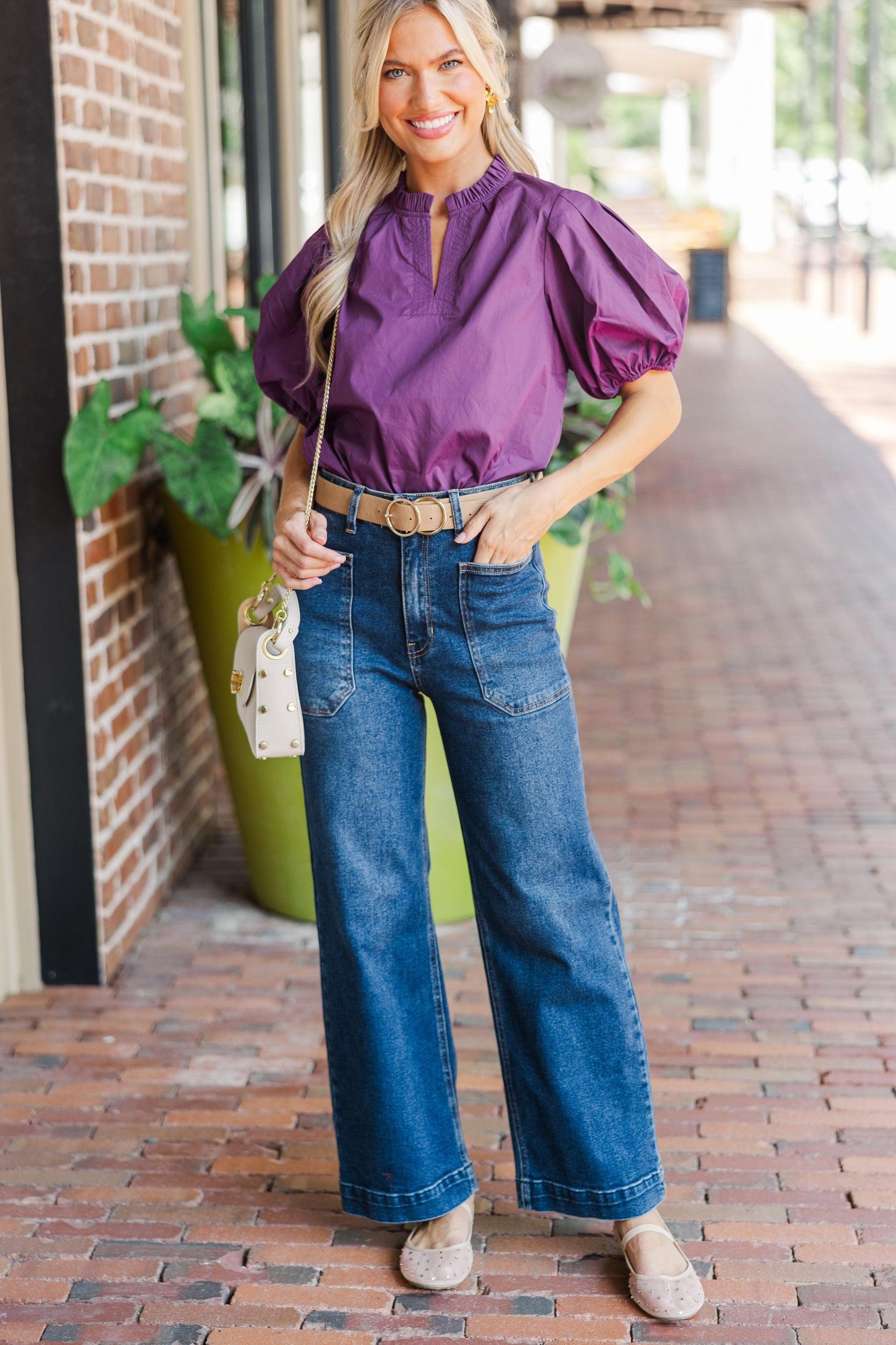 This blouse is super chic and versatile! The jewel tone is gorgeous for this time of year! Plus, we love the adorable puff sleeves! This blouse is going style nicely with your favorite jeans or trousers! V-neckline Short bubble sleeves Ruffled detailing No stretch Baileigh is wearing the small.