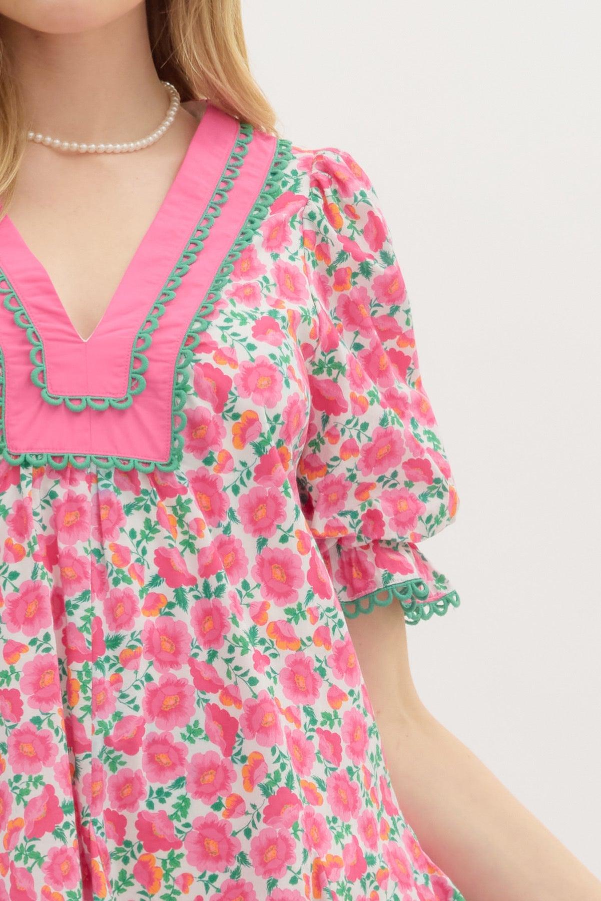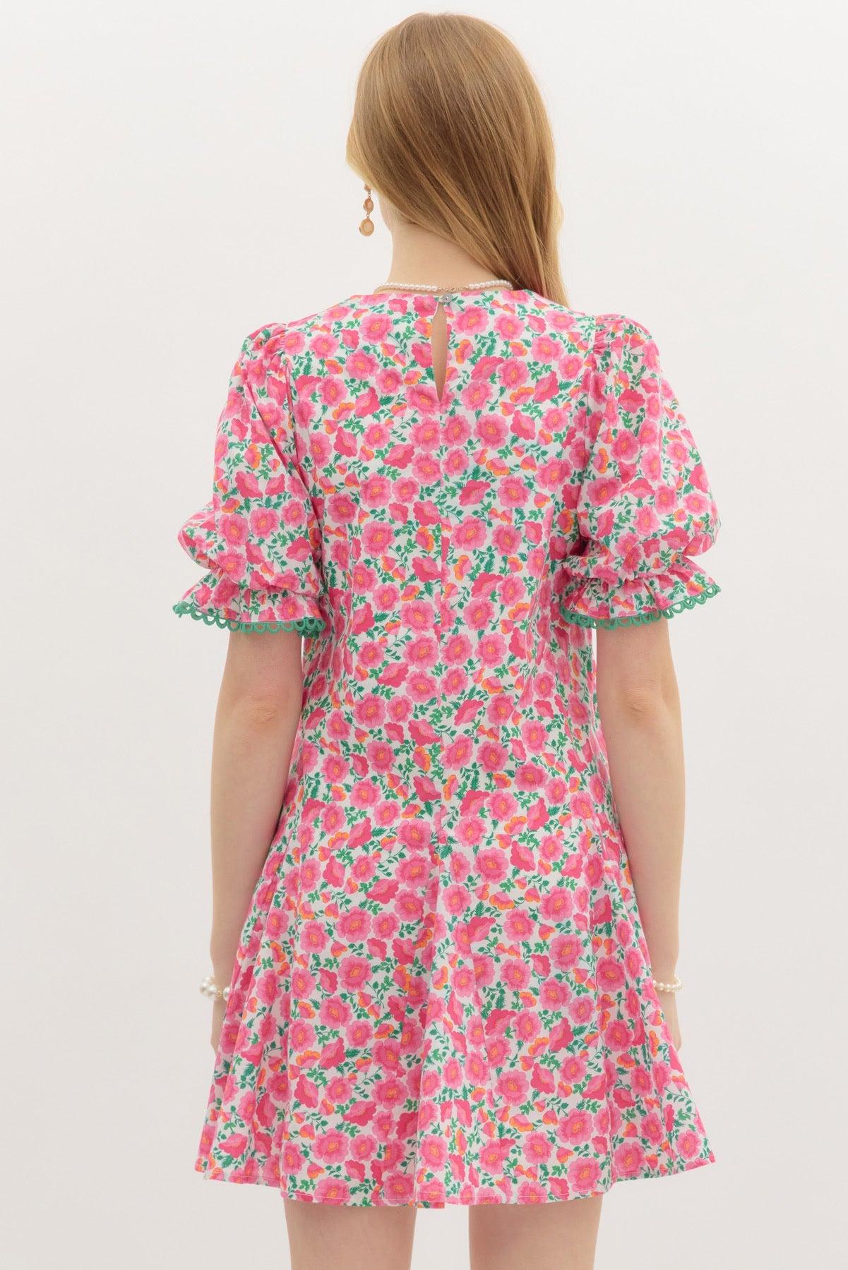 This Pink and Green Floral Dress is both fashionable and practical, with its true-to-size fit ensuring the perfect fit for any body type. The delicate floral design adds a touch of femininity to any outfit, making it a must-have for any wardrobe.