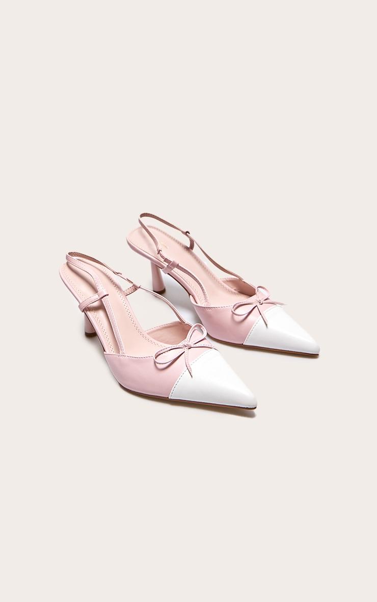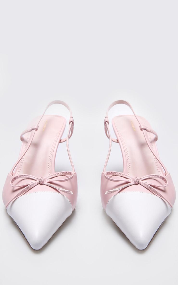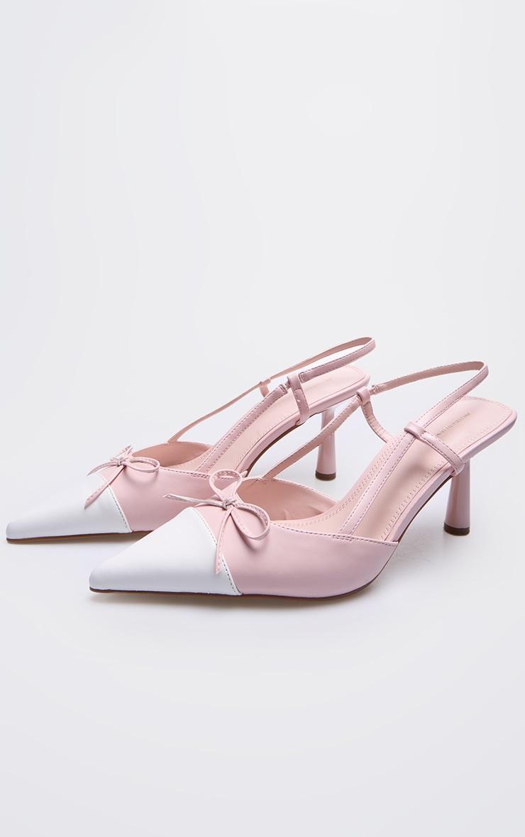 Add some pastel hues to your shoe collection with these pink and white point toe bow detail high stiletto court heels. Brought to you in a contrasting pink and white fabric with a chic bow detail and pointed toe, they're made for that next big occasion in your diary. Pair with a matching hue outfit, or contrast them with one of your little black dresses. PU Slingback 2.5”inch Heel p]:!mb-0inch>Category: FootwearProduct type: CourtsColor: PinkOccasion: Evening