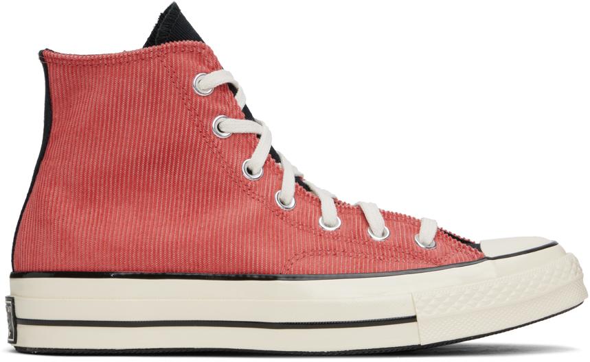High-top corduroy sneakers in pink and black. Faux-leather logo patch at inner side.