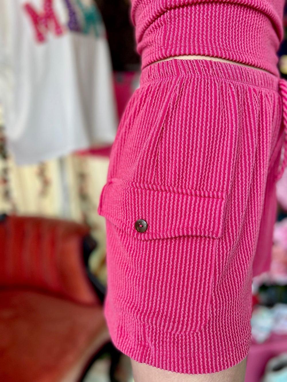 Get ready to elevate your summer look with the Pink Clout Shorts. Made from soft, terry cloth fabric, these stretchy ribbed shorts is not only super comforta...