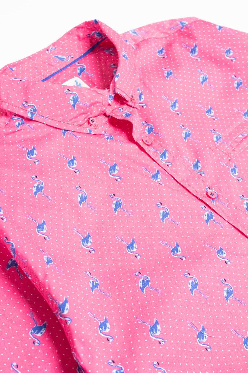 Pink Flamingos Woven Button Up Shirt (Extended Sizes)