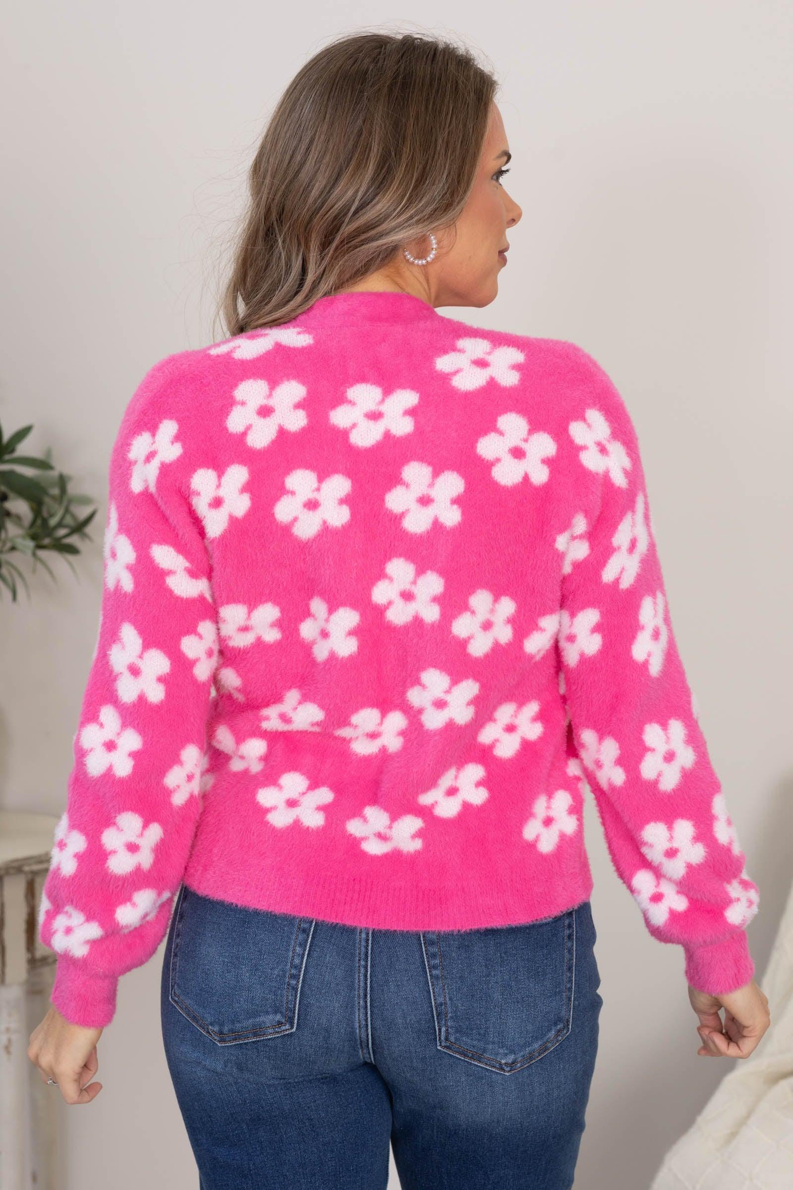 Product Details Colors: Pink, White Print: Floral Neckline: Button Down Sleeve: Long Sleeve Hemline: Straight Brand: Adora Material and Care 75% Acrylic 25% Cotton Hand Wash Cold Hang/Line Dry Size and Fit Small: Bust 40" Waist 36" Length 22" Medium: Bust 42" Waist 38" Length 23" Large: Bust 44" Waist 40" Length 24" Erica is 5'7 and wearing a size small