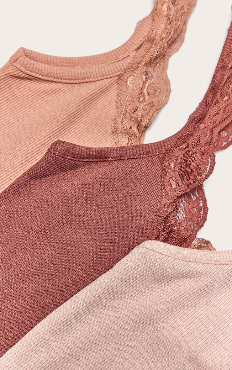 Secure your daily rotation with the essential pink multi pack of 3 ribbed lace trim pj vests. Each Vest features a ribbed design and delicate lace-trim scoop neckline. Ideal for elevated day comfort or chic layering. Team with matching bottoms, or style with tailored pants, black mules, and a sleek black bag.Length approx 48.5cm/19inch (Based on sample size S)Model wears size SModel Height - 5ft 7inchp]:!mb-4inch>Category: Lingerie & NightwearProduct type: Cami TopColor: PinkMaterial: Jersey RibOccasion: Day