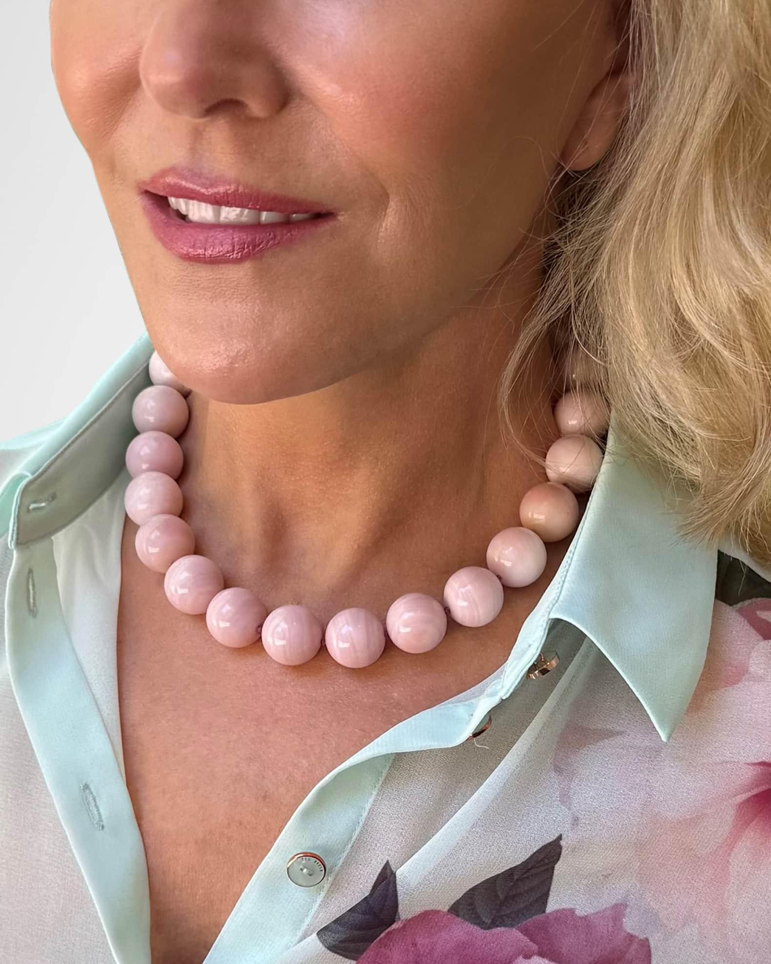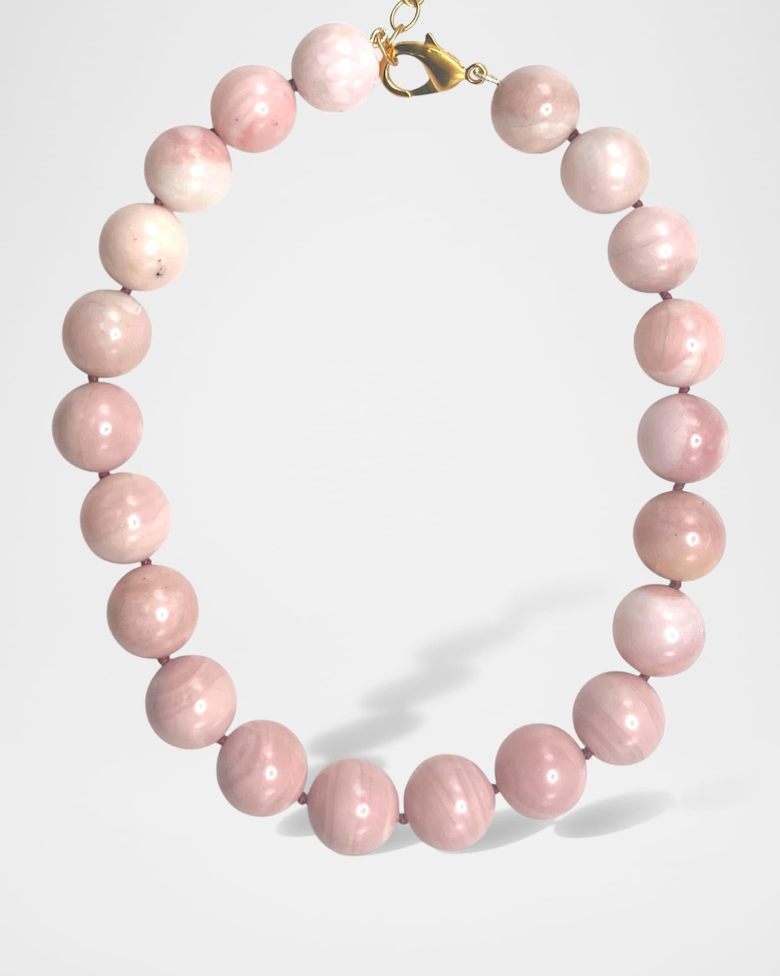 Smooth round balls of pink opal are strung together for this Dina Mackney necklace. Necklace length: approx. 16-18 inches 18-karat gold-plated brass Adjustable length Lobster clasp Made in USA from imported materials Shipping Direct from Vendor, usually ships within 10 business days.