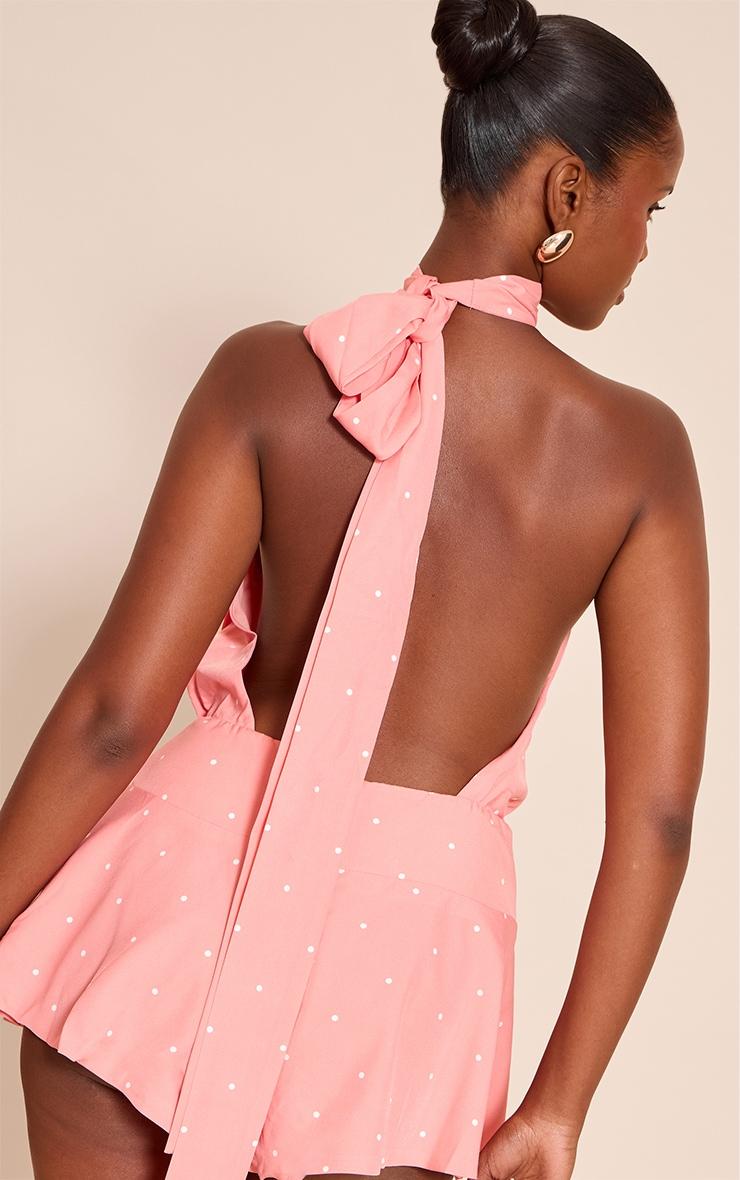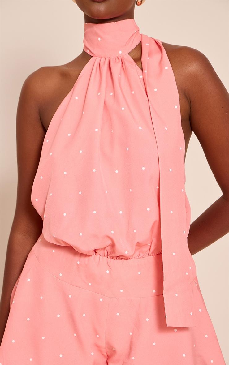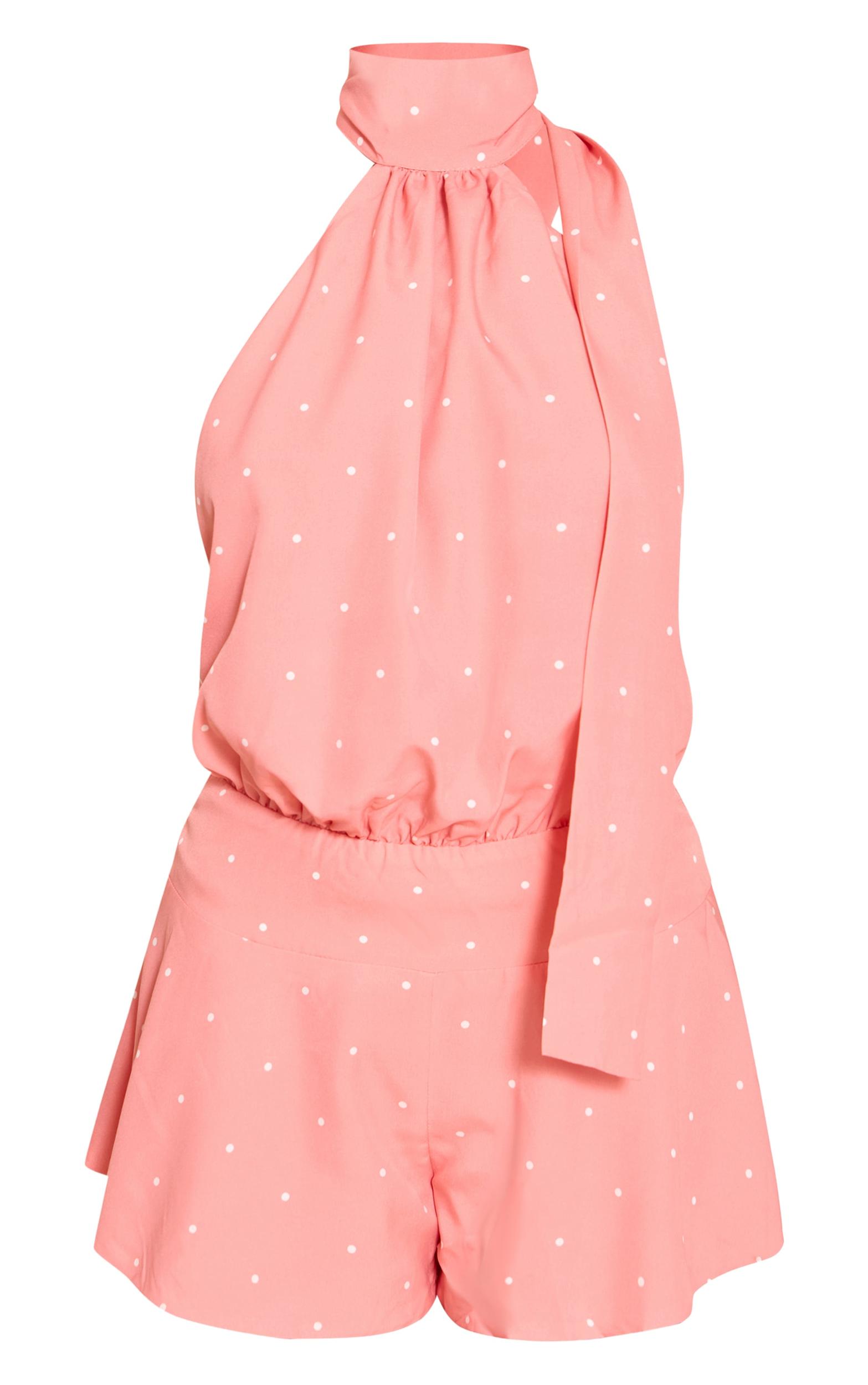 Make a playful statement in the pink polka dot halter neck neck scarf detail romper. Made from a pink polka dot printed material, this romper features a halter neck and matching scarf tie detail for a retro-inspired touch. Pair with sandals or heels and gold accessories for those weekend plans and beyond.Length approx 81.5cm/32inch (Based on sample size US 4)Model wears size UK 8/ EU 36/ AUS 8/ US 4Model Height - 5ft 9inchp]:!mb-4inch>Brand: PrettyLittleThingCategory: DressesProduct type: Floaty PlaysuitColor: PinkMaterial: Woven CrepeNeckline: AsymmetricSleeves: SleevelessOccasion: Evening