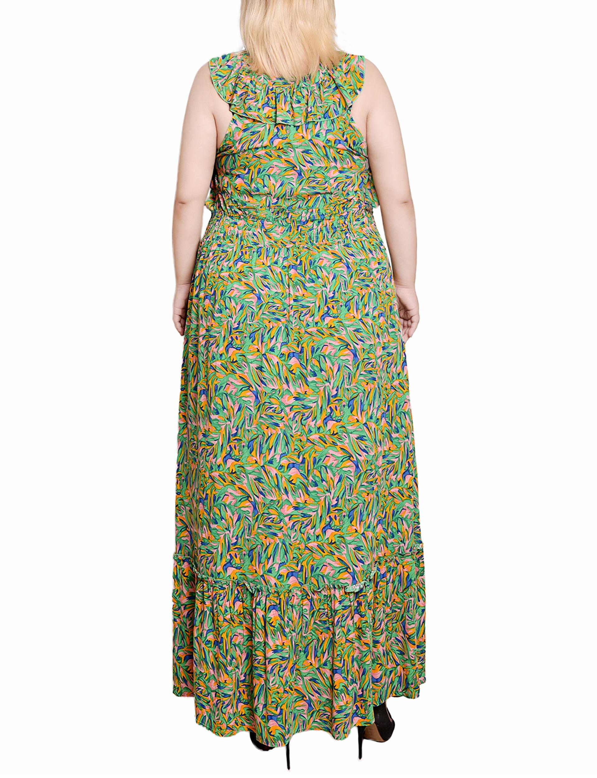 Pink Sleeveless Ruffled Rayon Dress - Plus Size