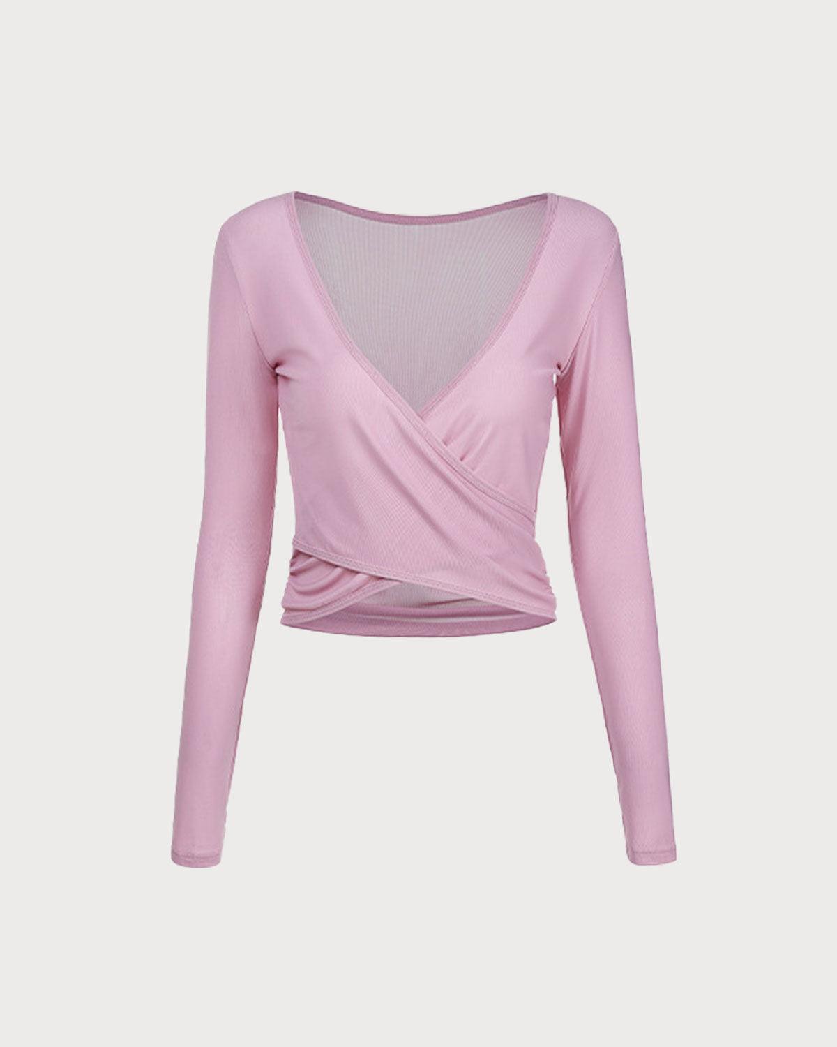 Style: Active Season: Spring, Summer, Fall, Winter Fabric Stretch: High Stretch Sleeve Length: Long Sleeves Sleeve Type: Regular Sleeve Neckline: Surplice Fabric: Nylon 95.0%, Spandex 5.0% Material: Knit Padding: No Padding Support: Light Support Fabric functionality: Breathable, Four-way stretch, Sleek, Sweat-wicking