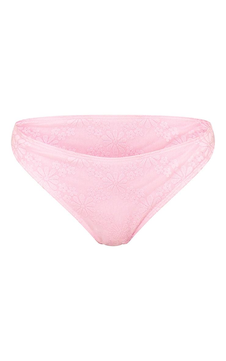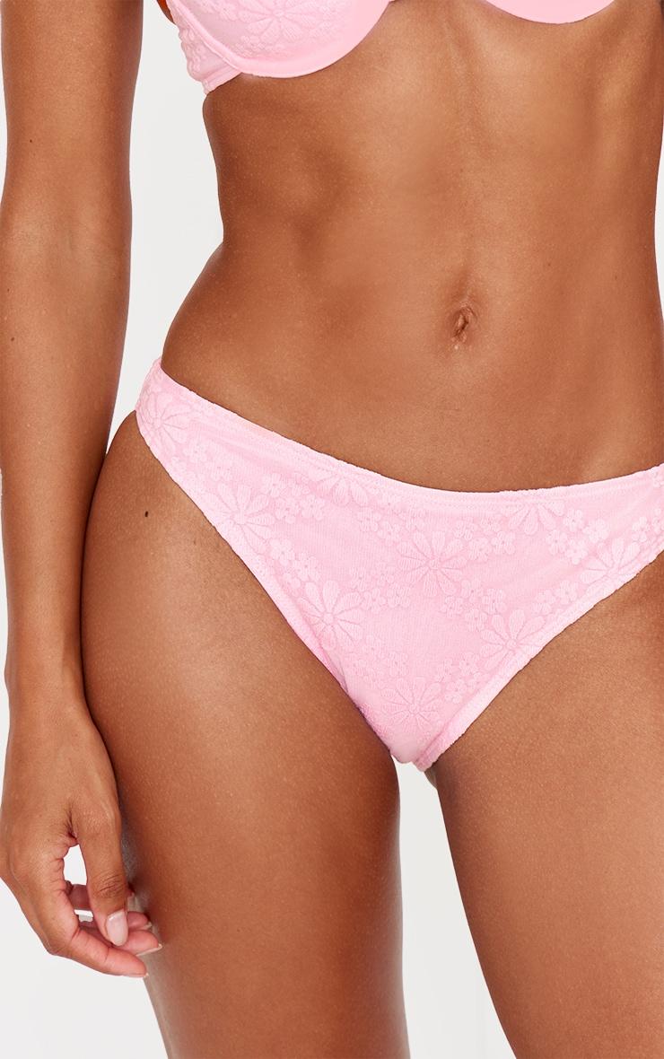 Elevate your poolside edit with these considered bikini bottoms. Cut from a tactile, textured swim fabric in a vibrant pink, the floral print lends a touch of artful detail. The high-leg silhouette offers a modern shape, perfect for showcasing sun-kissed skin. Length approx 25.5cm/10inch (Based on a sample size UK 8) Model wears size UK 8/ EU 36/ AUS 8/ US 4Model Height - 5ft 7inchp]:!mb-4inch>Brand: PrettyLittleThingCategory: SwimwearProduct type: High Leg Bikini BottomColor: PinkMaterial: SwimOccasion: Day