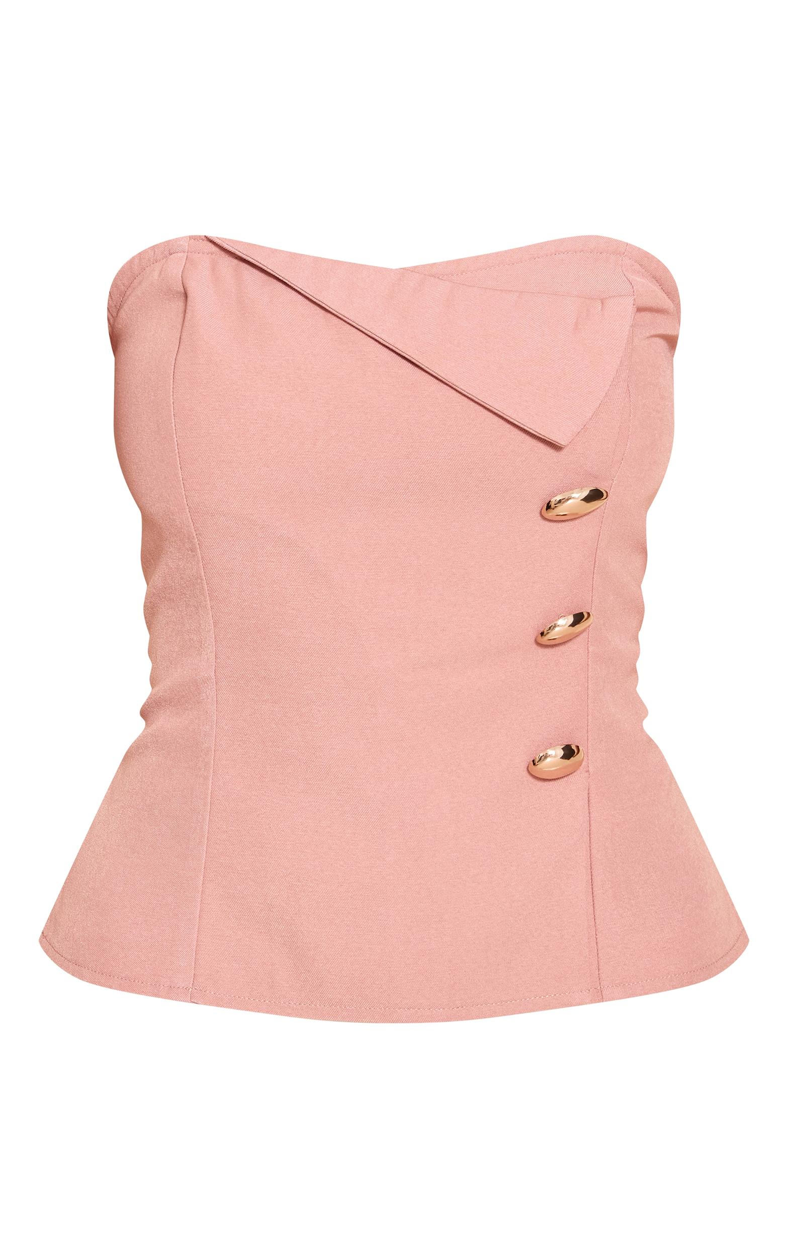 Command attention with the pink woven trim detail bandeau top. This bold piece features a distinct asymmetric neckline, punctuated by three striking gold-tone buttons down one side. Its artful, structured silhouette offers a confident, tailored appeal, making it an essential for your evening edit. Style yours with sleek wide-leg pants and statement heels for a look that owns the room.Length approx 34.5cm/13.5inch (Based on sample size US 4)Model wears size UK 8/ EU 36/ AUS 8/ US 4Model Height - 5ft 9inchp]:!mb-4inch>Brand: PrettyLittleThingCategory: TopsProduct type: Bandeau TopColor: PinkMaterial: Woven CrepeDesign: PlainNeckline: BandeauSleeves: BandeauOccasion: Evening