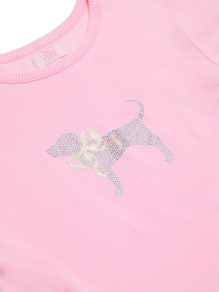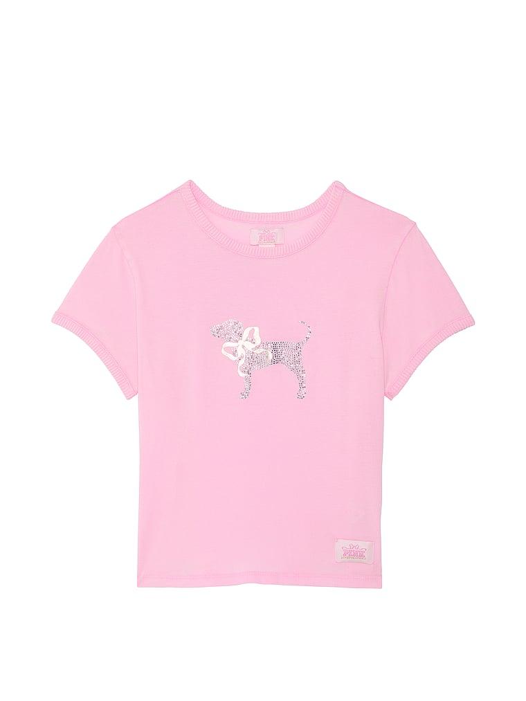 Big news: Your fave retro-style Tee got an extra girly update with cute PINK x LoveShackFancy deets. You've now got two new options to choose from—a sweet blingy dog design and the iconic "5 rules of pink" style. But honestly, why pick just one? We love this with the PINK x LoveShackFancy Sweatpants. Ummm, match made in heaven, much?From the exclusive, limited-edition PINK x LoveShackFancy collaboration.Soft 100% cottonCrewneckShort sleevesContrasting trim detail at neck and sleevesPINK x LoveShackFancy detailsPatch logo detail at lower hemFitted silhouetteImported