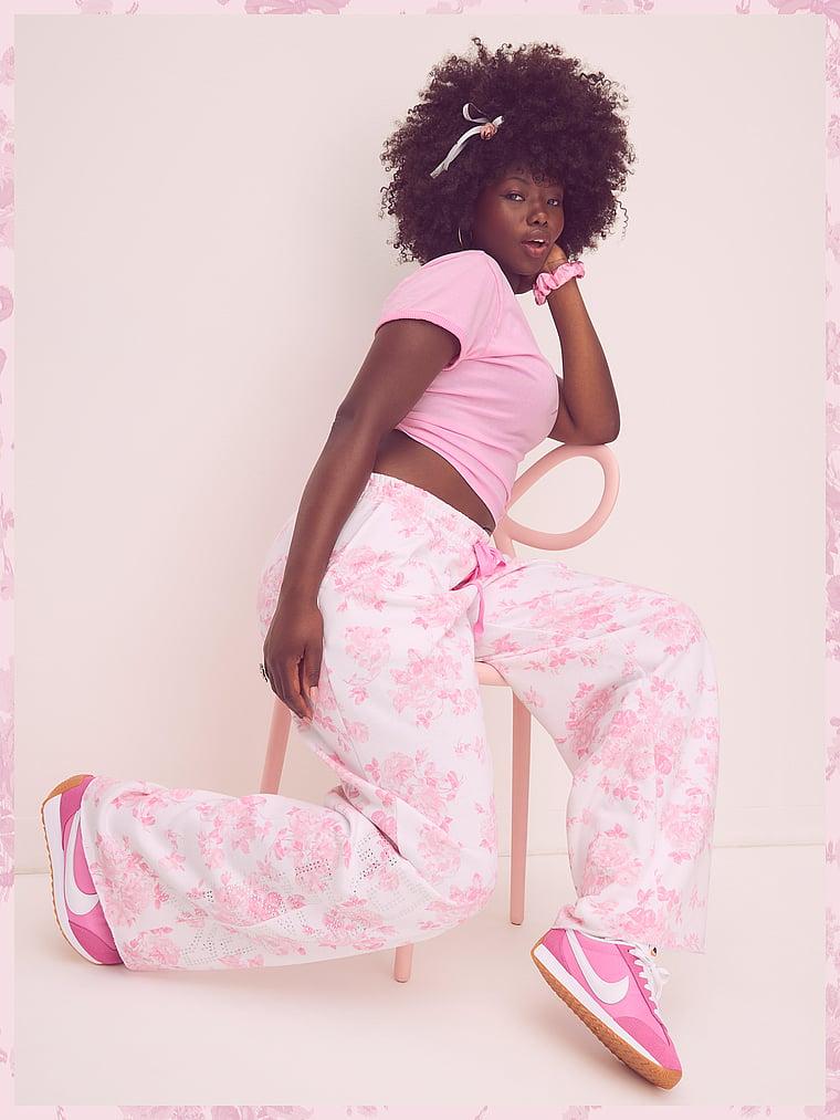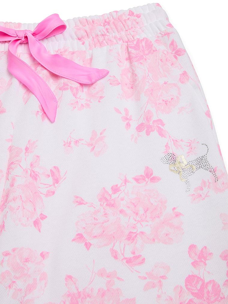 These comfy, fleece-lined faves with a roomy fit are already *so* easy to love. But throw in three new options ft. girly deets like pops of shimmer, beautiful bows, and flirty florals? Obsessed. They also happen to be a perfect match with the PINK x LoveShackFancy Oversized Crew Sweatshirt.From the exclusive, limited-edition PINK x LoveShackFancy collaboration.Wide shirred elastic waistband with ribbon drawstringSide pocketsGraphic detail at hipPINK logo detail at lower legRaw-edge hemSoft fleece liningRelaxed fitInseam: Short: 30”; Regular: 32”; Tall: 34”Imported