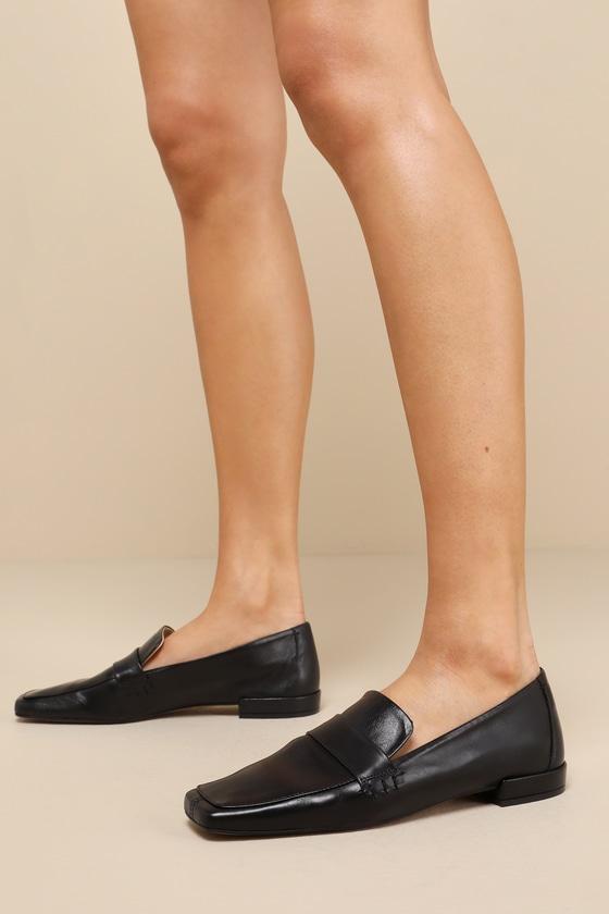 The Intentionally Blank Pinky Black Leather Square-Toe Loafer Flats have an understated chicness that makes them essential for creating effortlessly sophisticated looks! Sleek and smooth genuine leather creates a loafer-inspired silhouette with an exaggerated square-toe upper and a notched vamp with matching strap detail. The slip-on design makes these the perfect choice for everyday styling! Available in Euro sizes only.