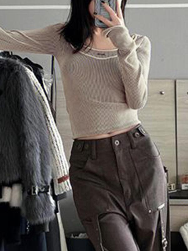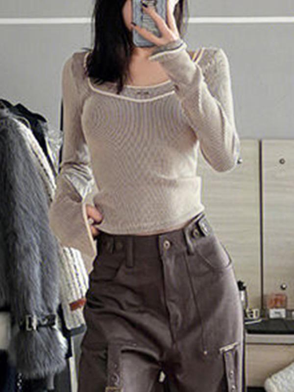 Pinstripe Fake Two Piece Long Sleeve Knit