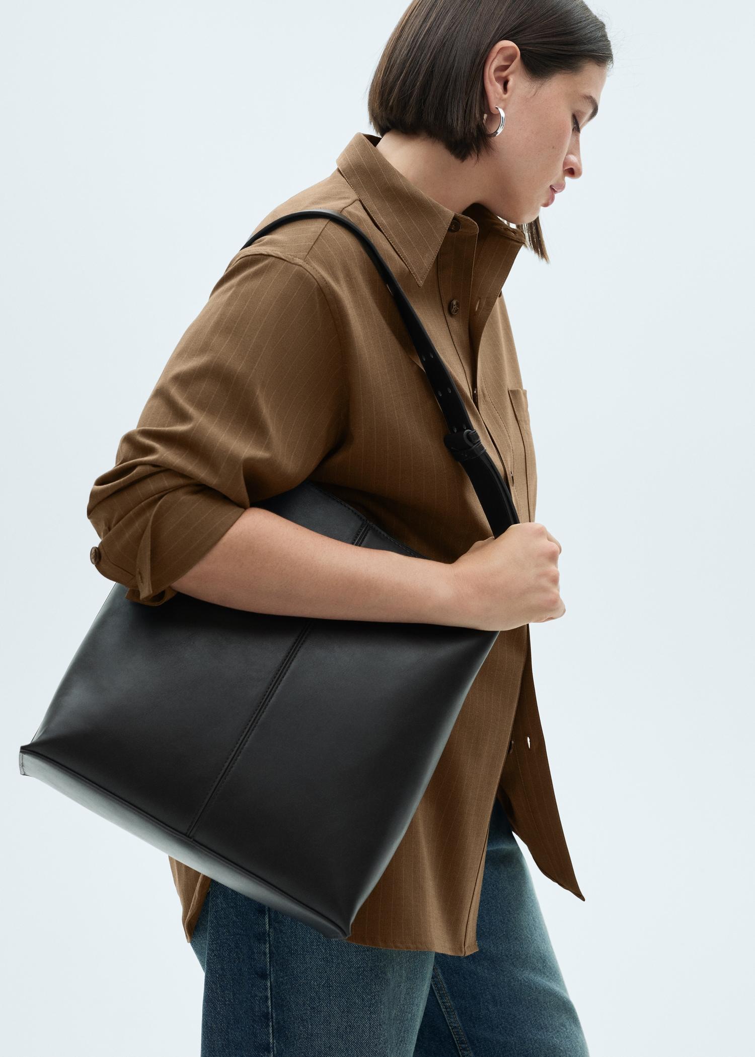 Pinstripe design. Oversize design. Shirt-style collar. Long buttoned sleeves. Patch pocket on the front. Button fastening on the front section. The model is 1.79 tall and is wearing a size 36. Co-ord. Side length 14.69 in. Back length 32.13 in