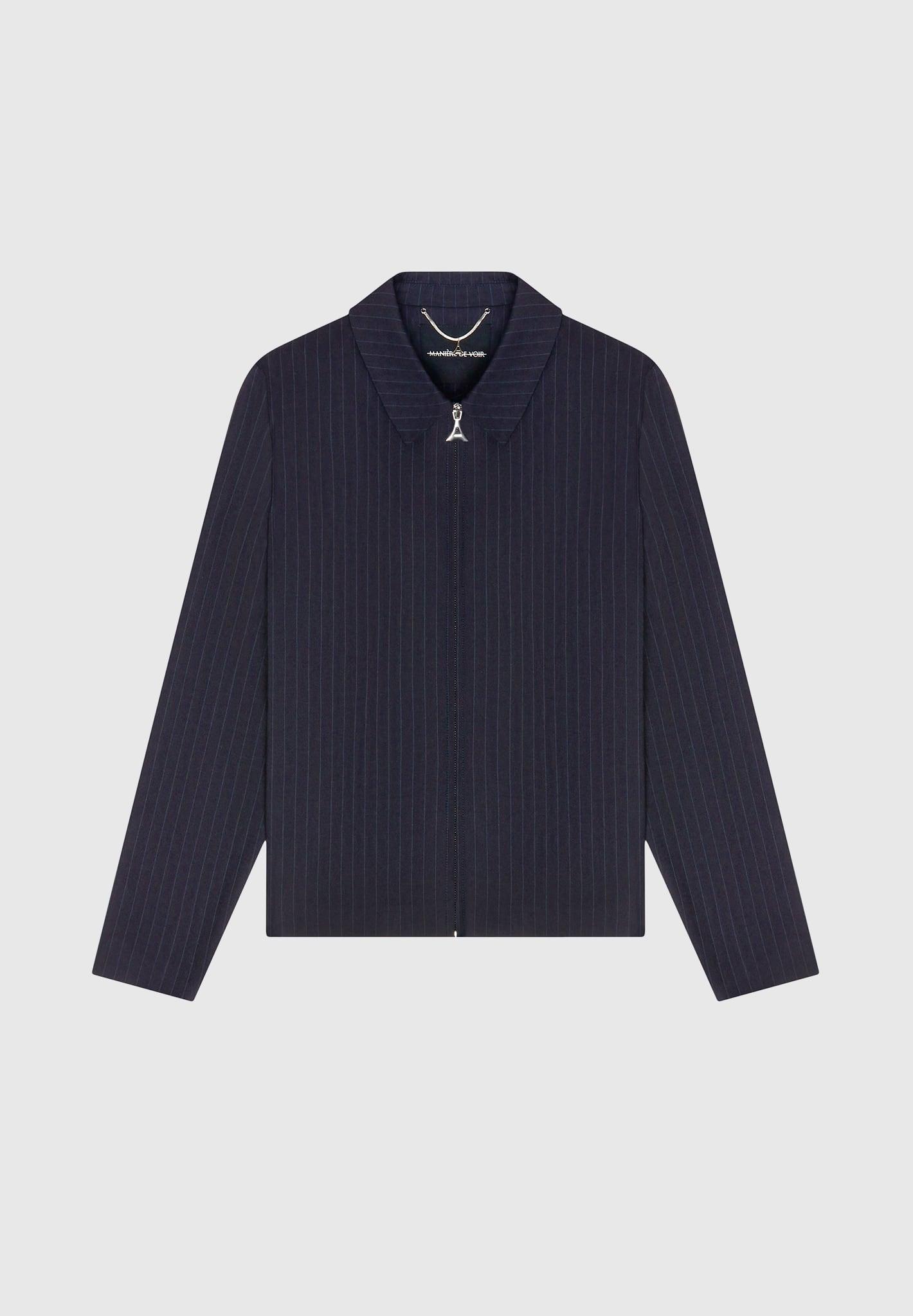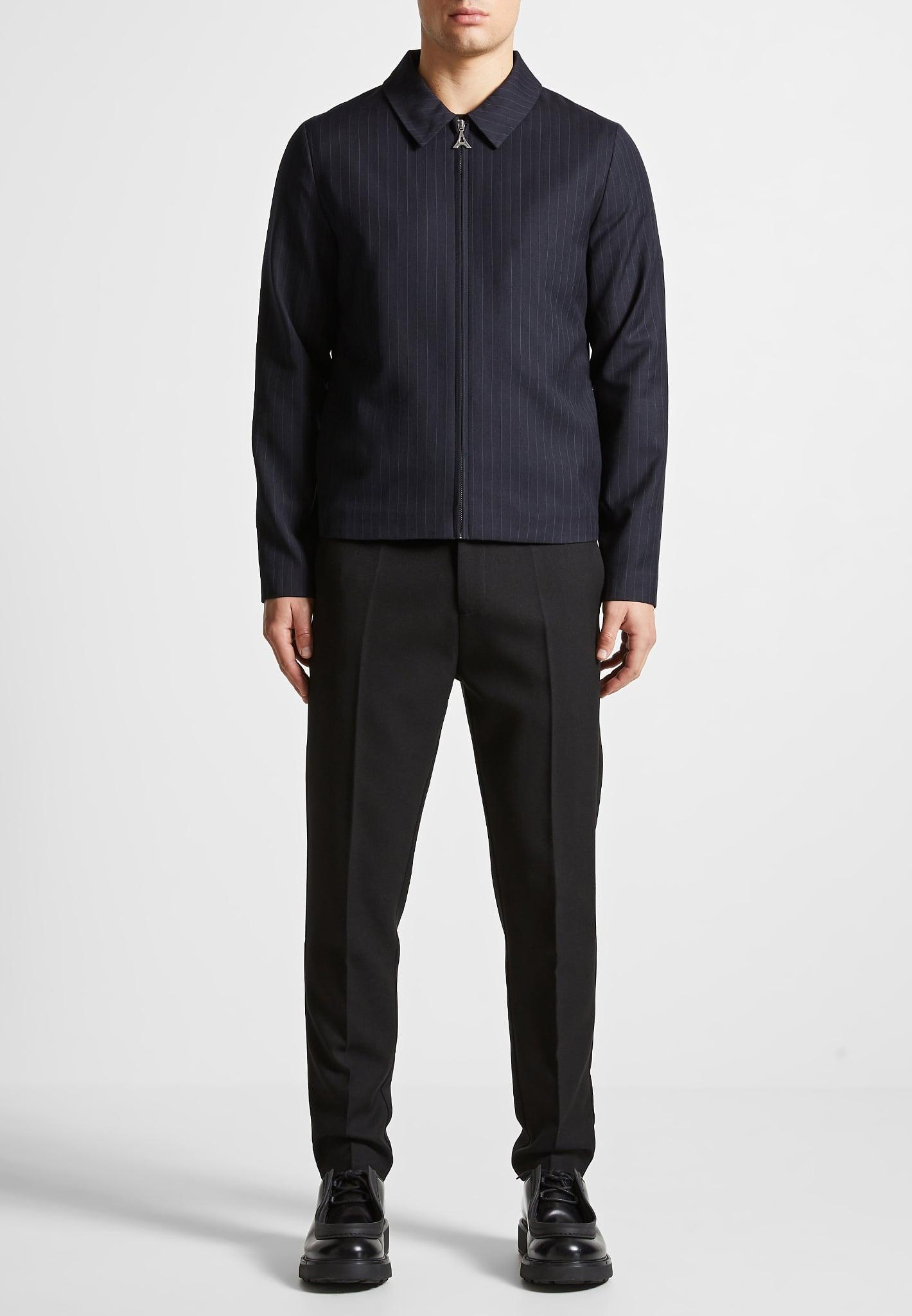 This Tailored Jacket is a perfect blend of fashion and formalwear. The Pinstripe fabrication is made of high-quality blend, offering maximum durability for long-lasting wear. A must-have for a modern tailoring wardrobe. Cropped Silhouette Tailored Fit Sleek Design Point Collar Unique Pleat Design Side Seam Pockets Manière De Voir Eiffel Zip Closure Silver Manière De Voir Branded Plaque 80% Polyester 20% Rayon Always check the care label for wash instructions.