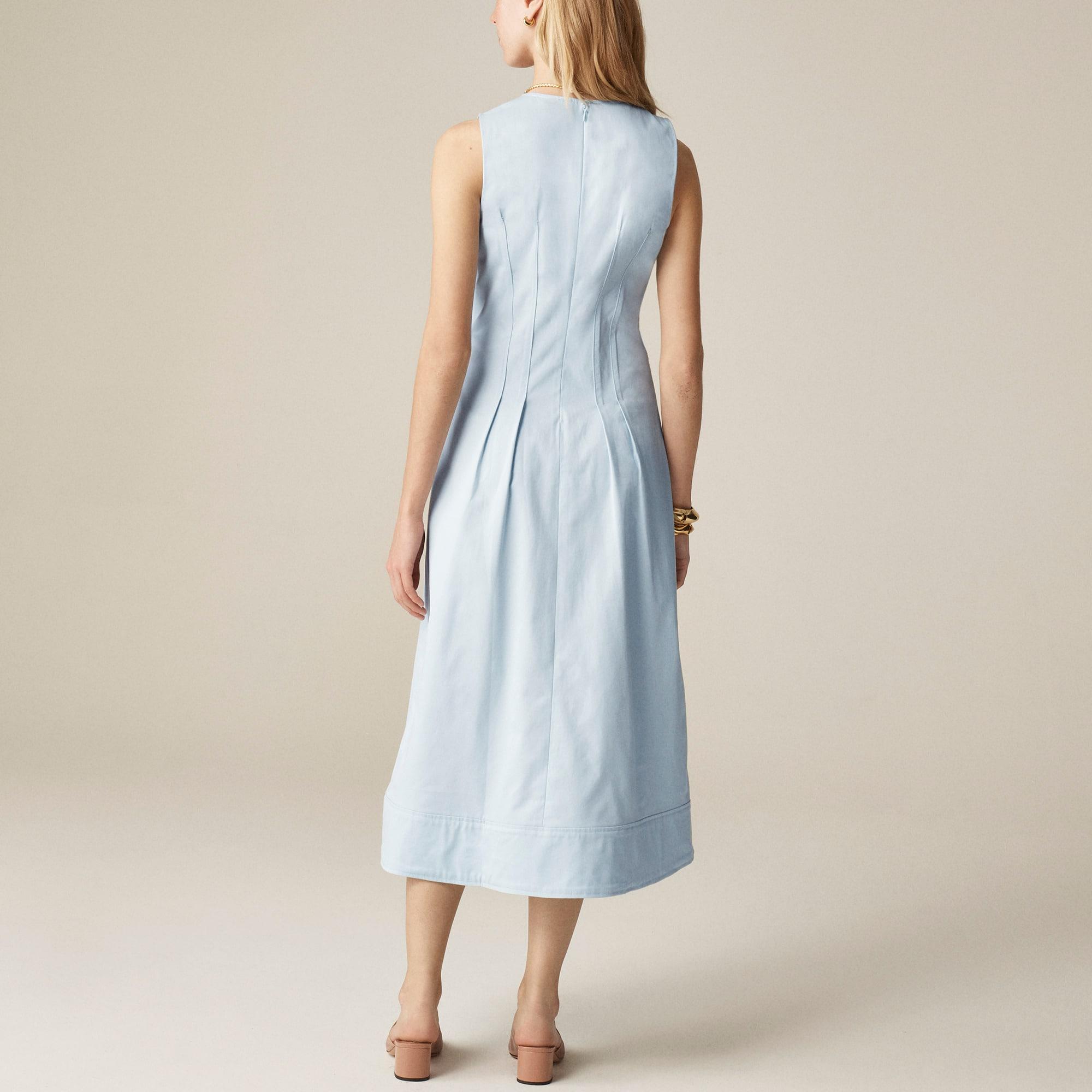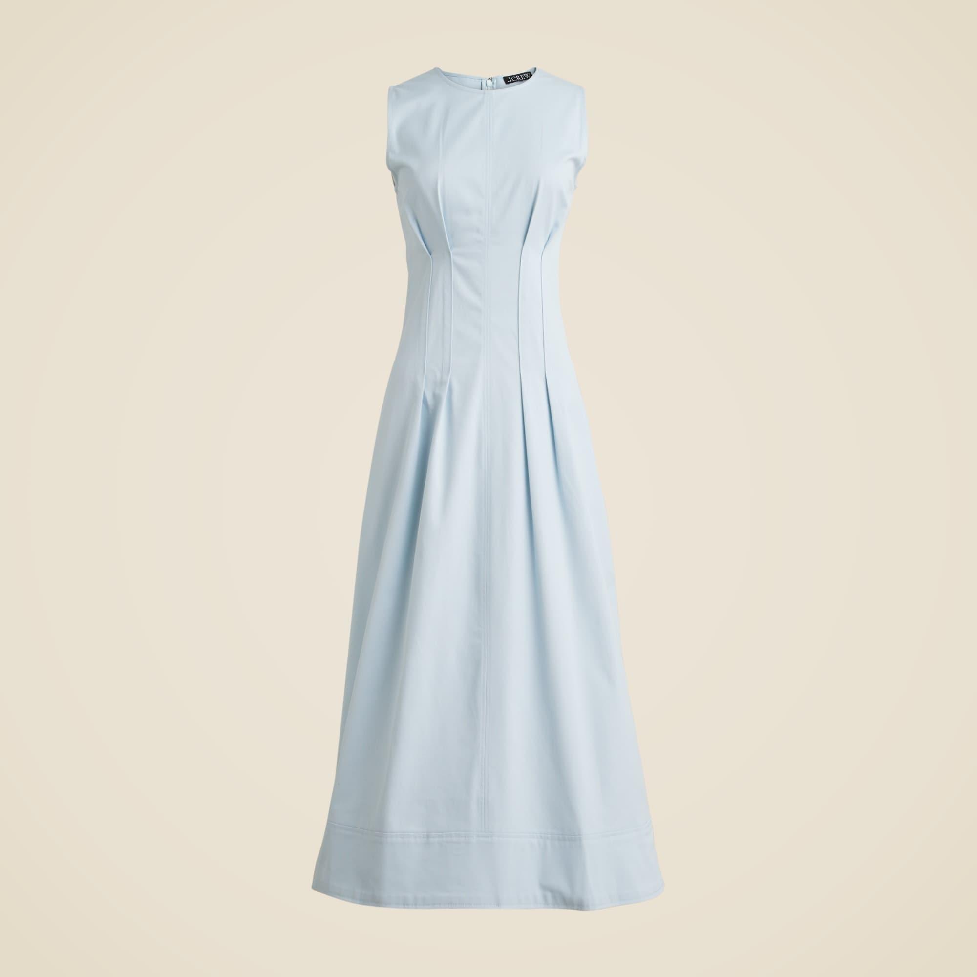 Pintuck midi dress in stretch twill