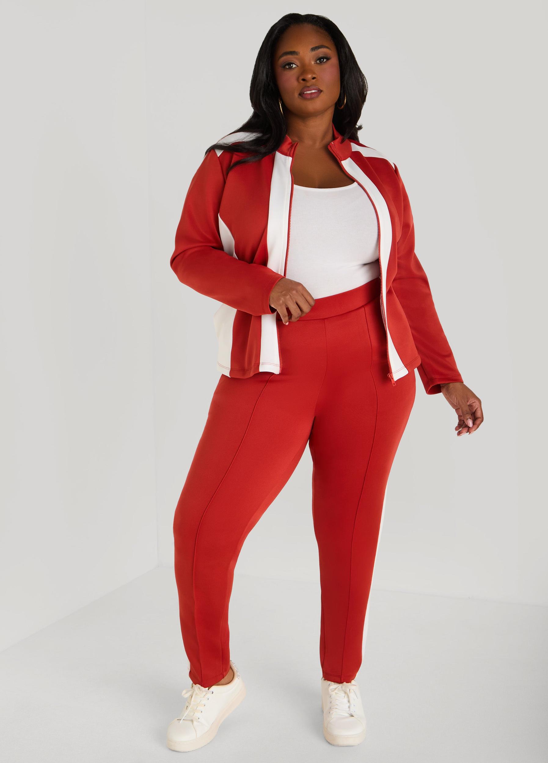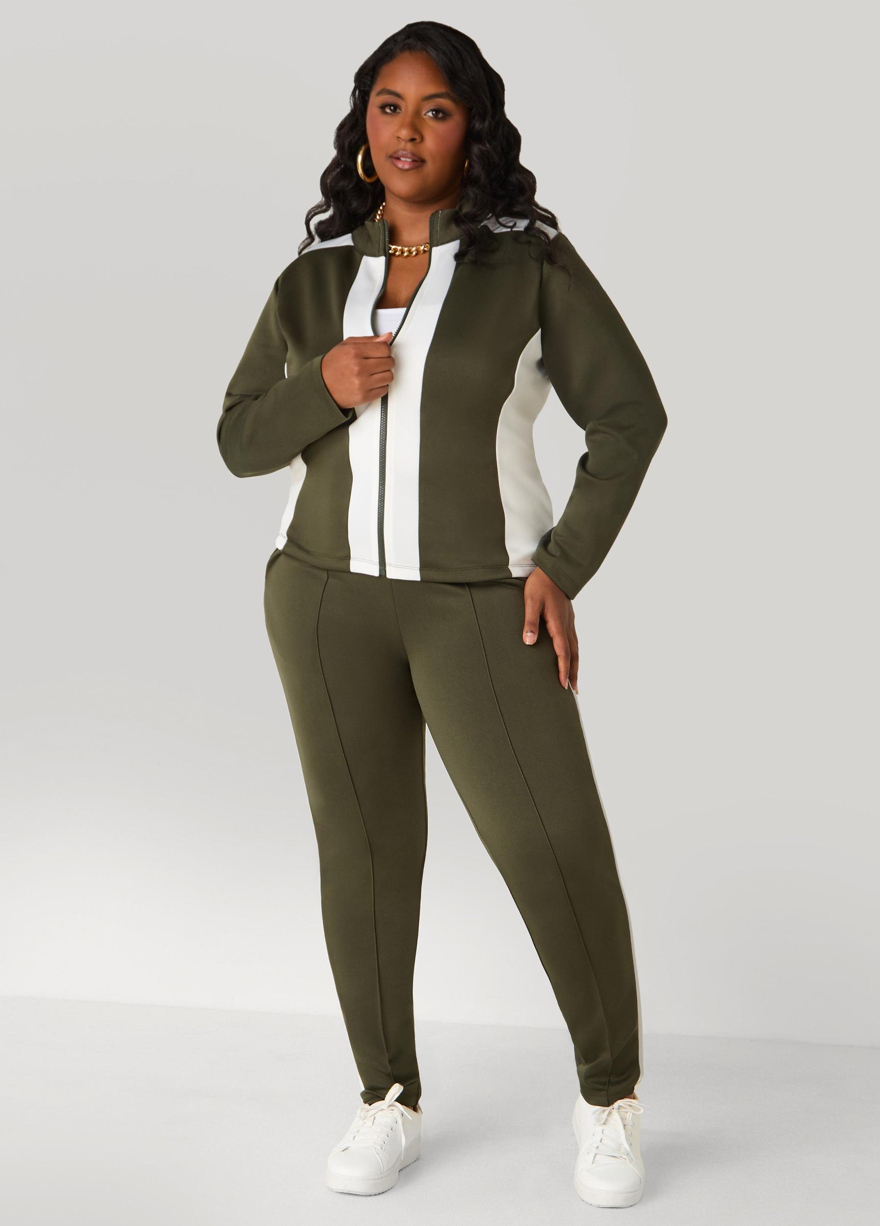 These two-tone leggings hug high at the waist with pintucked panels and side pockets that keep things cute & casual. Pull on and pair with the matching jacket for a set made to turn heads.