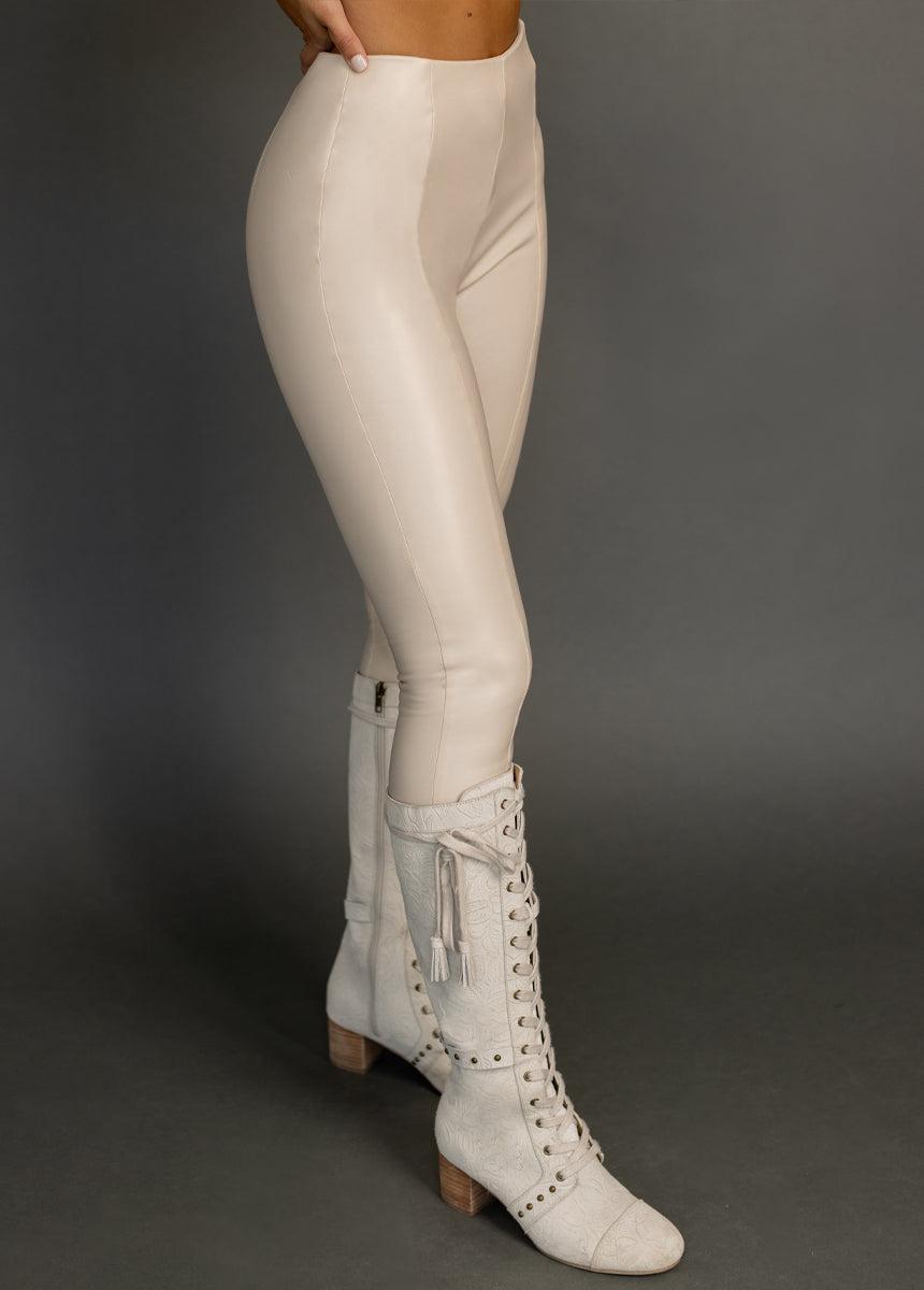 Upgrade your wardrobe with the Piper Pant in Ecru, a must-have staple for any closet! Crafted from chic faux leather, these versatile pants offer a sleek look that can be dressed up or down. The high-waisted design and fitted stretch provide a flattering silhouette, perfect for showcasing your style. Featuring princess seams for added shape and an invisible zipper at the side seam for convenience, these pants ensure both comfort and sophistication. Effortlessly elevate your outfits with the Piper Pant and make a bold statement wherever you go! Faux leather High-waisted Fitted stretch Princess seams Invisible zipper at side seam 48% PU, 52% Polyester Hand wash only, line dry Model is 5'6 wearing a size XS