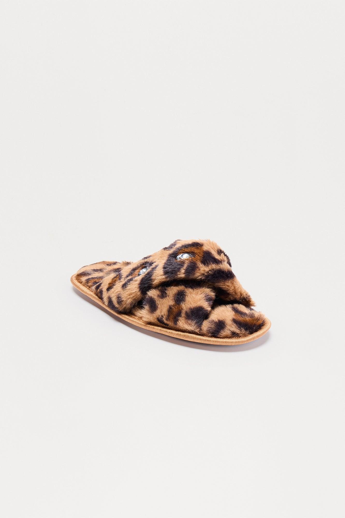Piper Rhinestone Faux Fur Slippers - Leopard Female