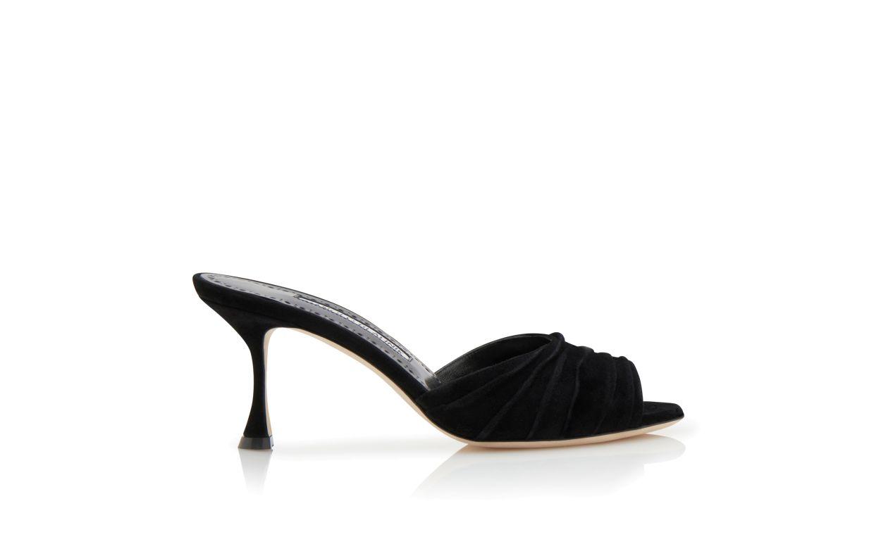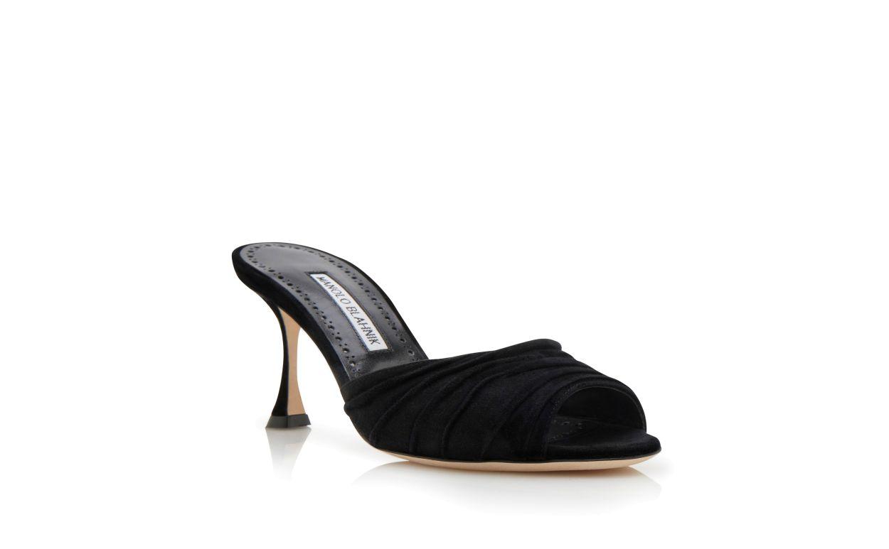 PIRUA Black Suede Ruched Open Toe Mules