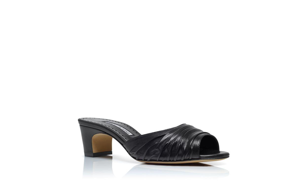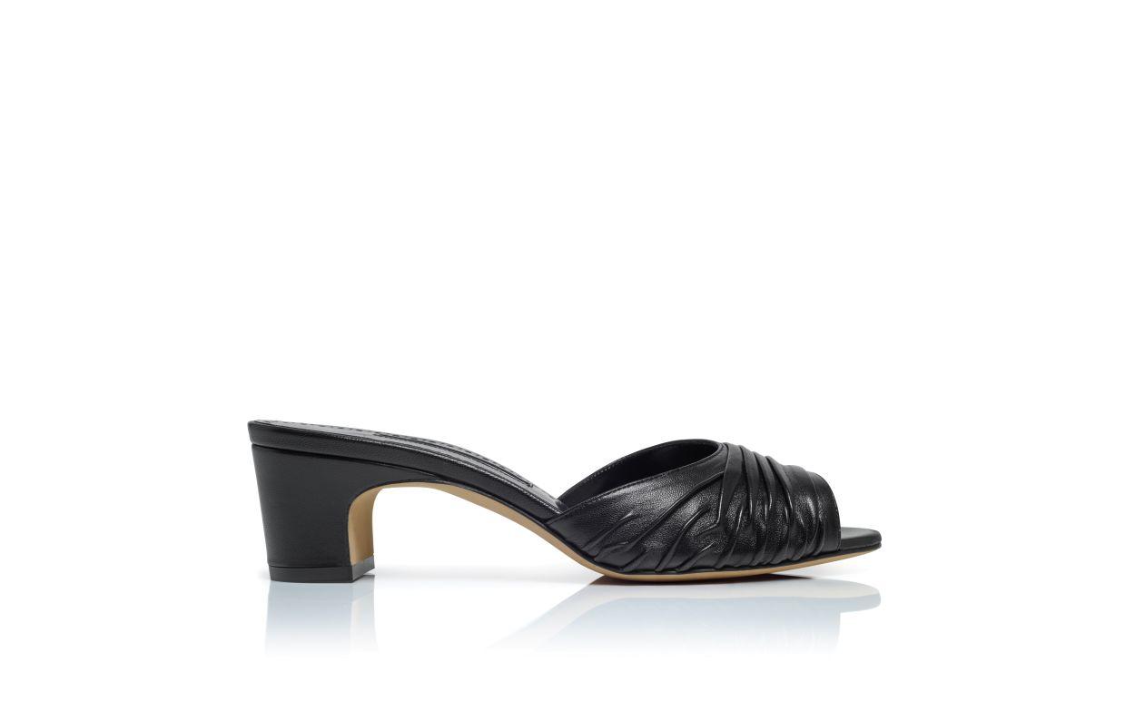PIRUABAR Black Nappa Leather Ruched Open Toe Mules