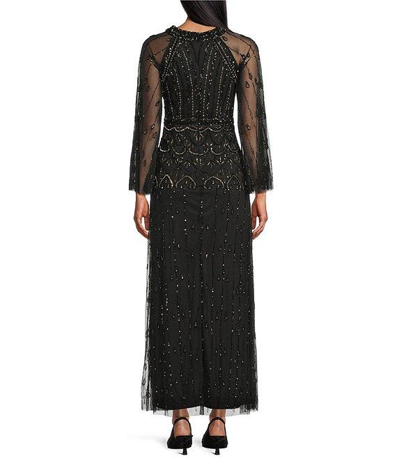 Pisarro Nights Mesh Bell Long Sleeve Beaded Embellished Colum Gown