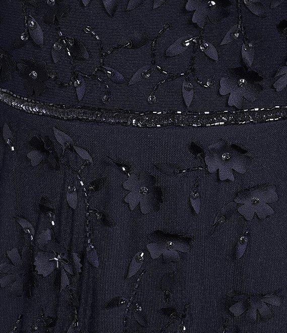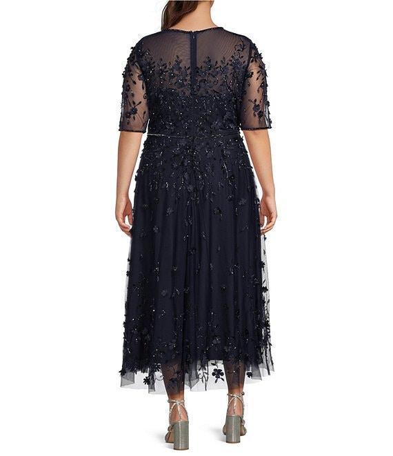 Pisarro Nights Plus Size 3D Floral Beaded 3/4 Sleeve Illusion Crew Neck Dress