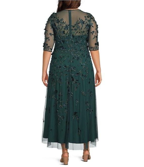Pisarro Nights Plus Size 3D Mesh Floral Illusion Crew Neckline Short Sleeve A-Line Dress