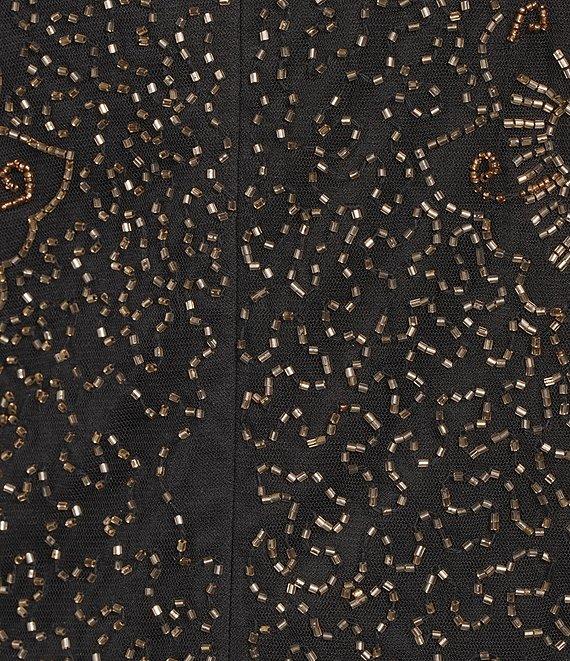 From Pisarro Nights Plus, this dress features: Beaded mesh fabrication V-neckline 3/4 sleeves Floral beaded detail Lined Center back zipper closure Approx. 40" in length from high point shoulder Polyester Spot clean only Imported.