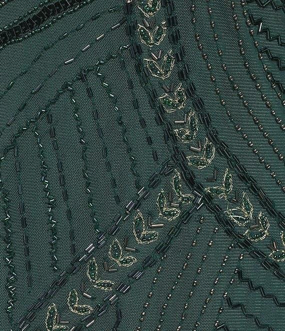 Pisarro Nights Plus Size Chevron Motif Beaded Mesh Boat Neck Sleeveless Gown