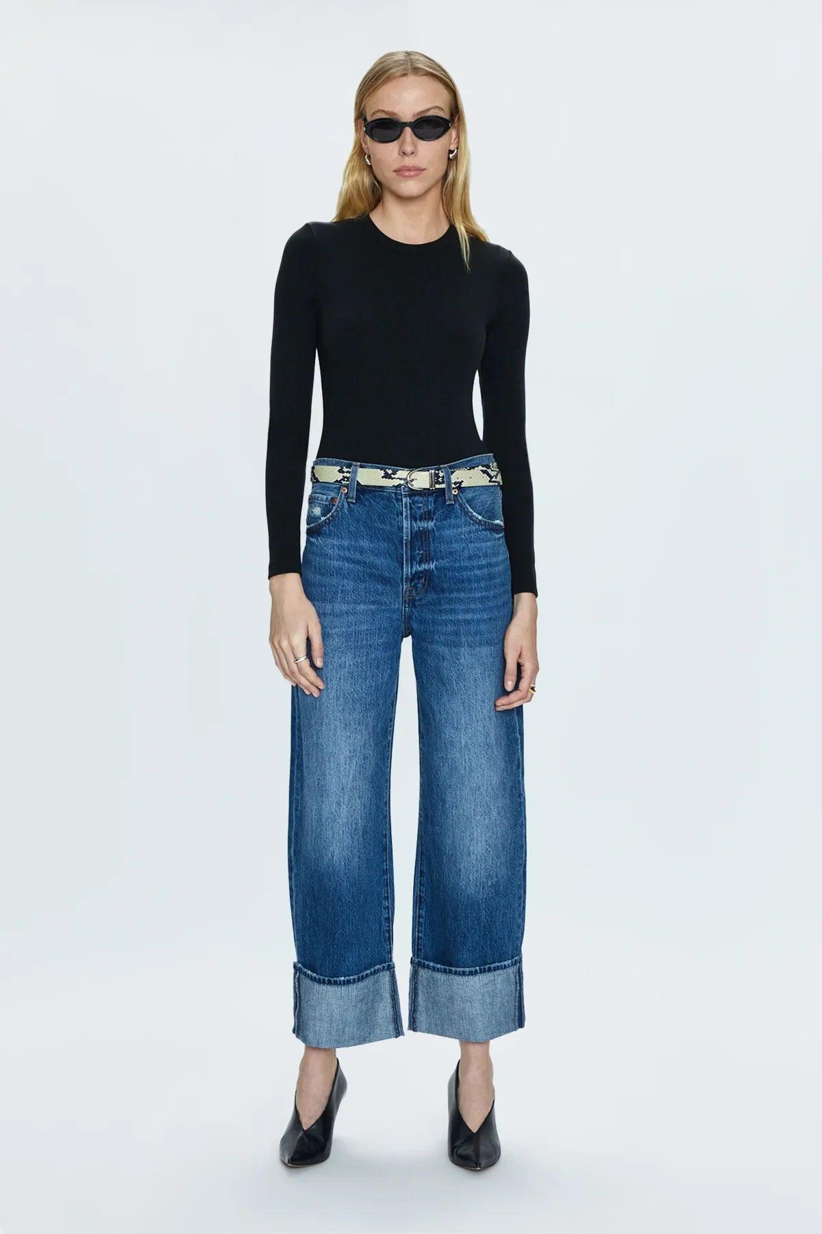 High-Rise Wide Leg Jeans in Fulton Vintage. Meet your new favorite jeans. These high-rise jeans feature a relaxed, wide-leg fit, an oversized cuffed ankle hem, and are crafted from rigid, lightweight denim for a vintage-inspired look and feel.