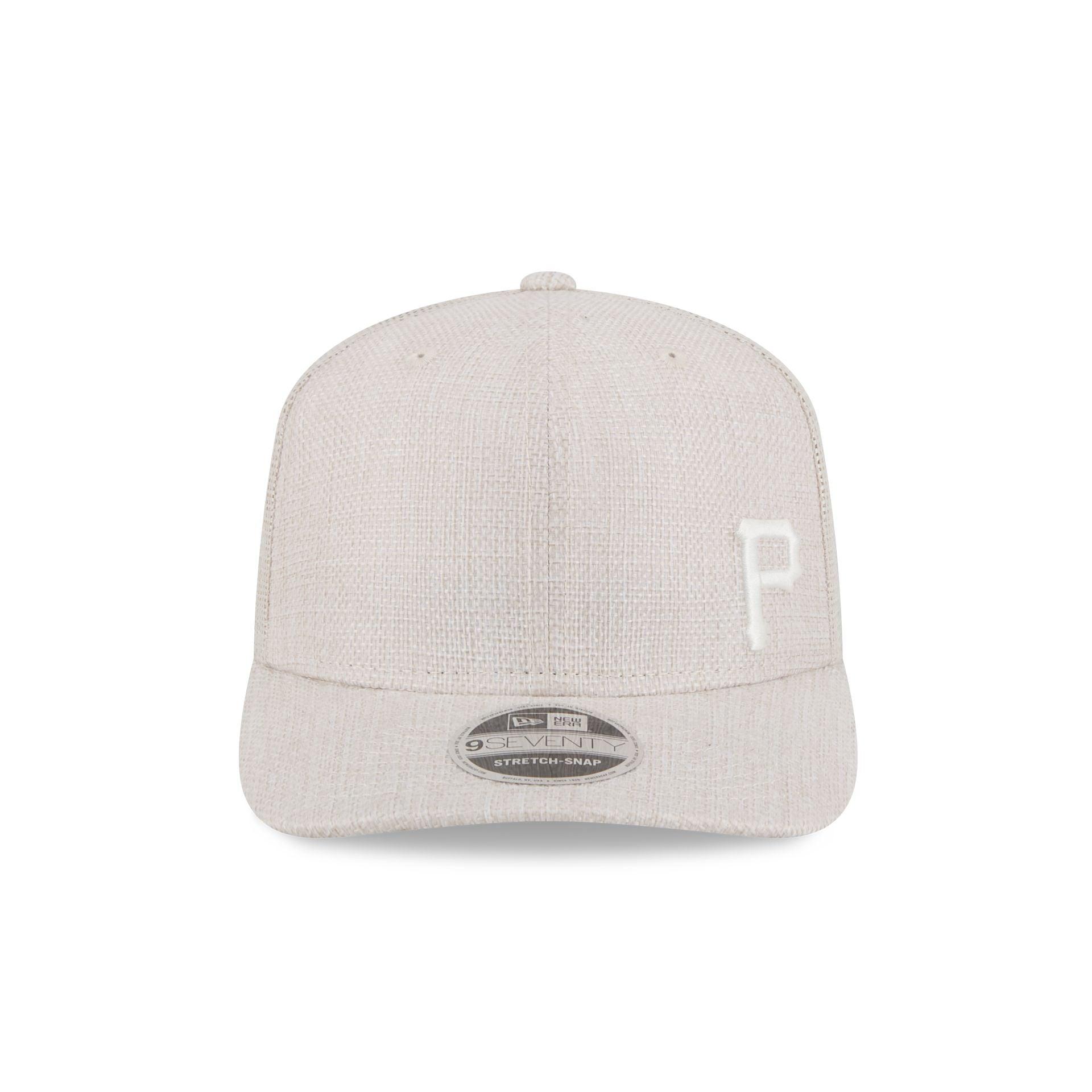 The Pittsburgh Pirates Flawless 9SEVENTY Trucker Hat features a hemp fabrication with an embroidered Pirates logo at the front panels with an adjustable snapback closure at a mesh rear.