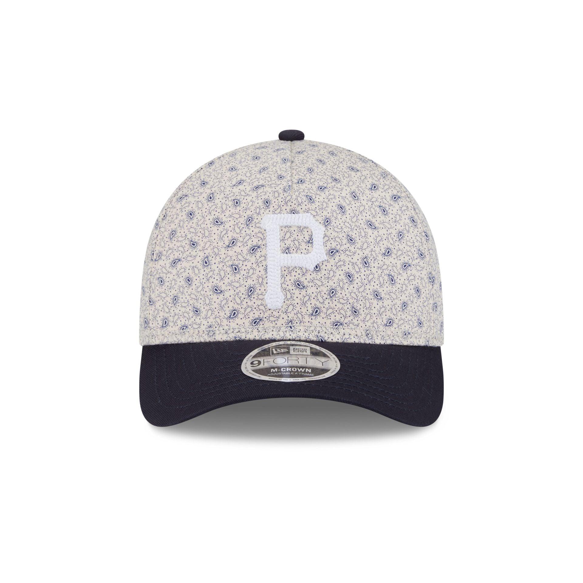 The Pittsburgh Pirates Micro Print 9FORTY M-Crown A-Frame Adjustable Cap features an embroidered Pirates logo at the front panels against a specialty Japanese milled woven fabric from Three Looms Japan Fabrics.. Additional details include an adjustable D-Ring closure at the rear.