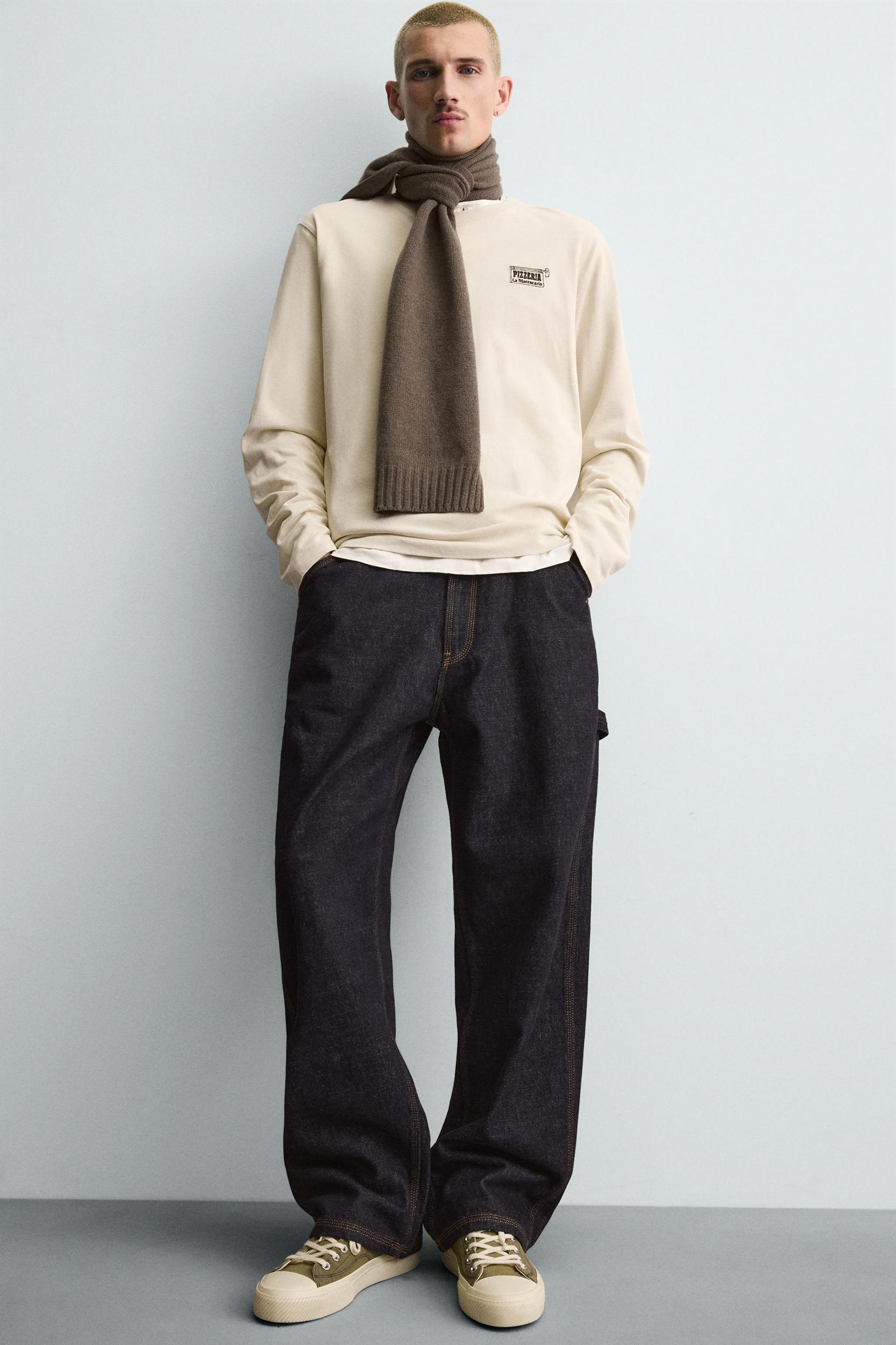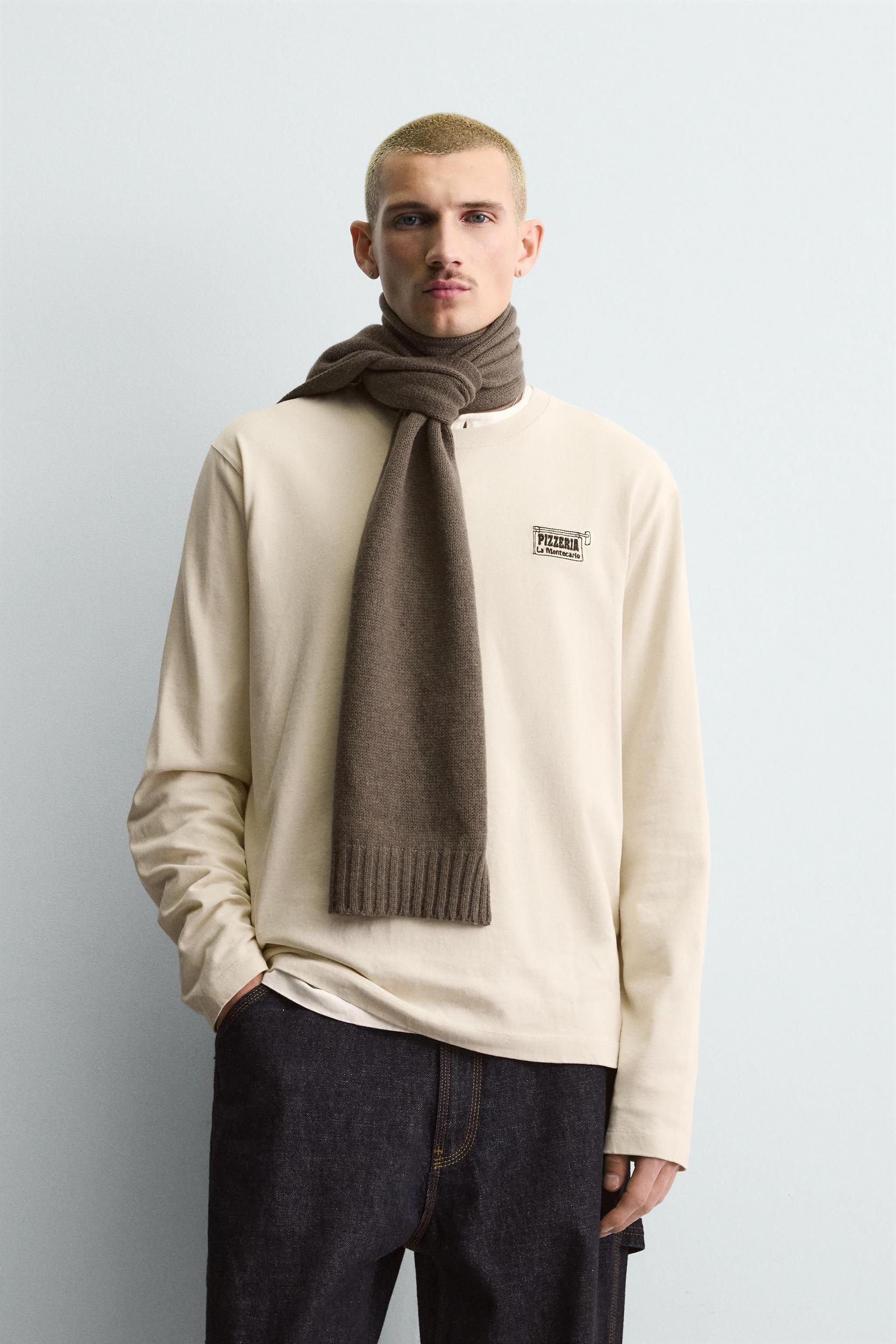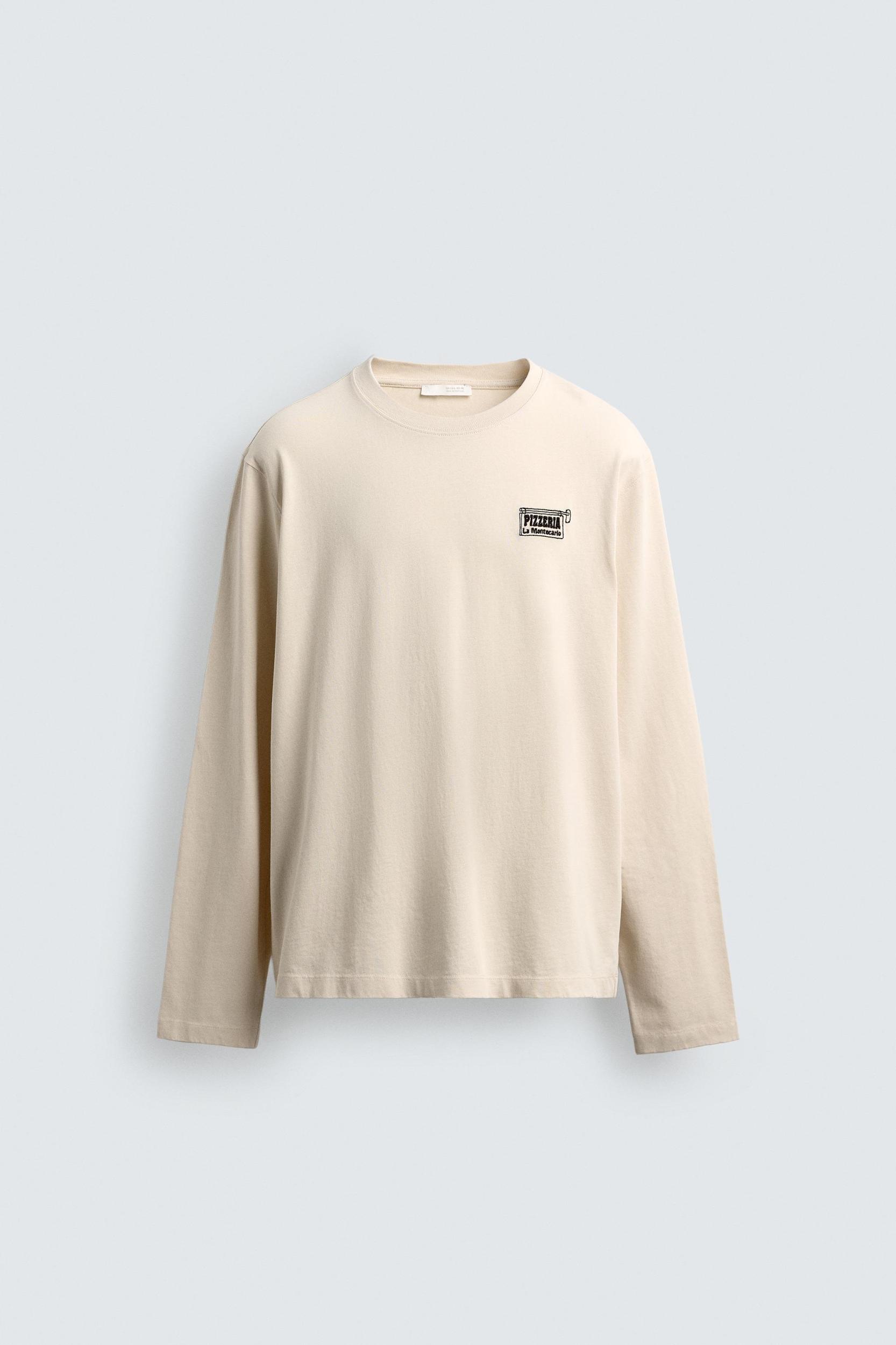 Relaxed fit T-shirt. Round neck and long sleeves. Pizzeria La Montecarlo graphic print and embroidery in contrasting combination on the front and back.