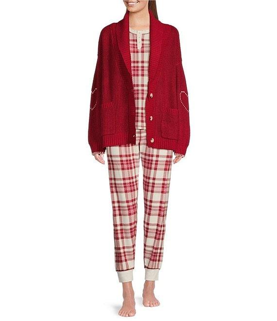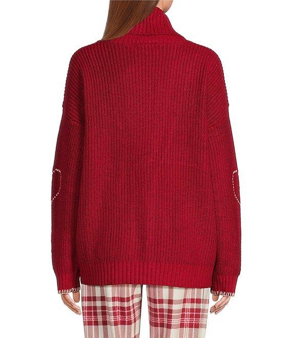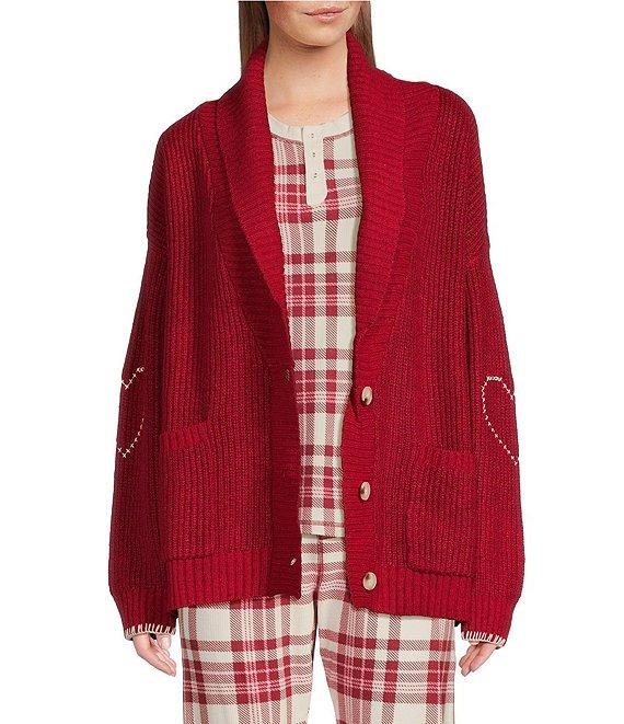PJ Salvage Long Sleeve Shawl Collar Sweater Knit Cross-Stitch Heart Cardigan
