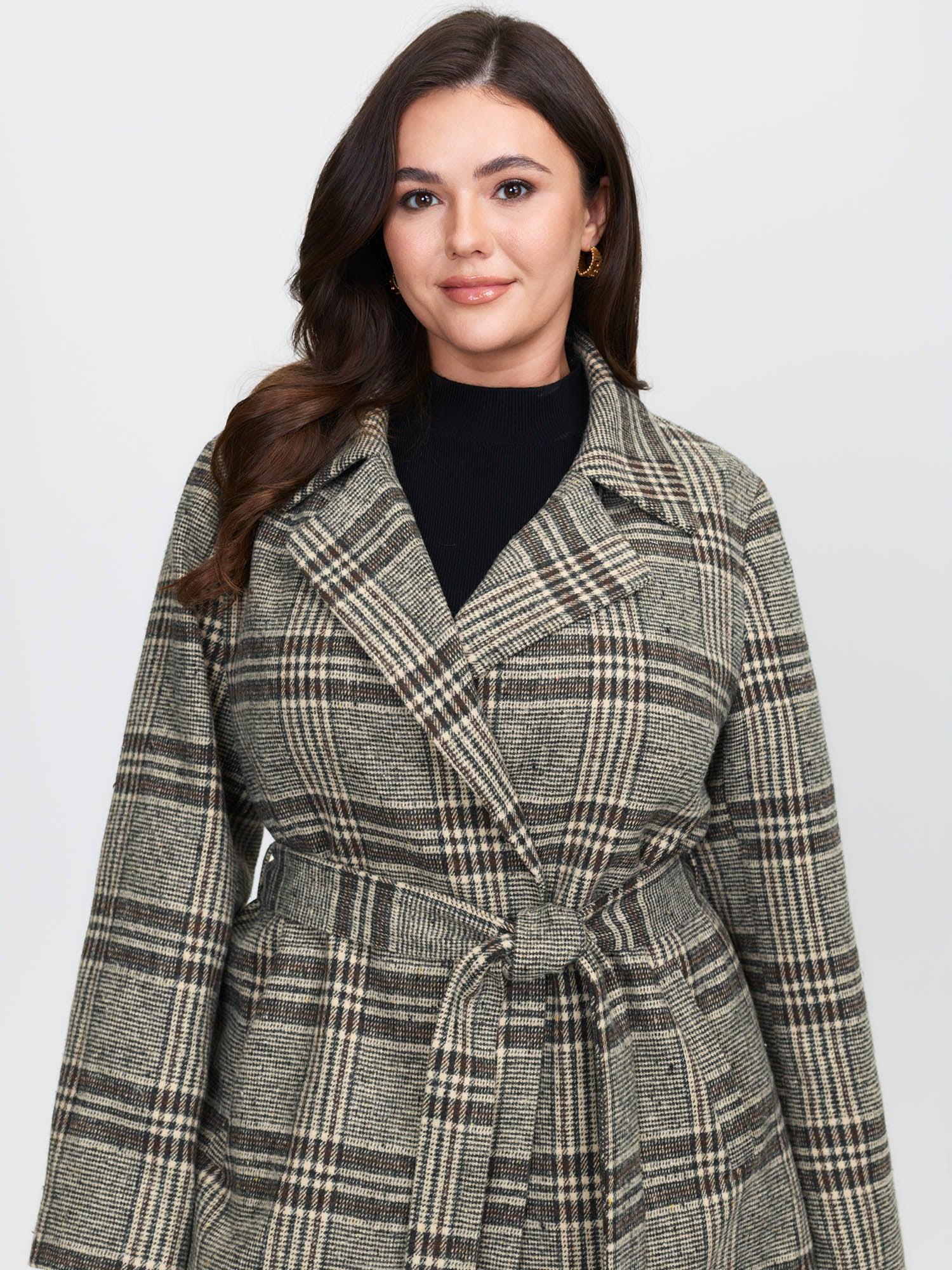 Shop Plaid Belted Waist-Defining Coat now and redefine your style with confidence at BloomChic. Tailored for mid and plus-size women. This trendy Outerwear Women, sizes 10-30. Color:Yellowishbrown;Style:Retro;Prints:Plaid;Pocket:Slanted pocket;Belt:Belt;Closure Type:Button;Lining:Lining