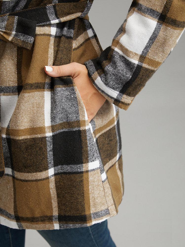 Shop Plaid Contrast Belted Lapel Collar Coat now and redefine your style with confidence at BloomChic. Tailored for mid and plus-size women. This trendy Outerwear Women, sizes 10-30. Season:Winter;Color:Tan;Style:Casual;Pattern Type:Plaid;Details:Pocket, Button, Belted, Contrast, Knotted;Pocket:It is perfectly sized to carry a phone.;Belt:Belt;Closure Type:Button;Lining:No-lining