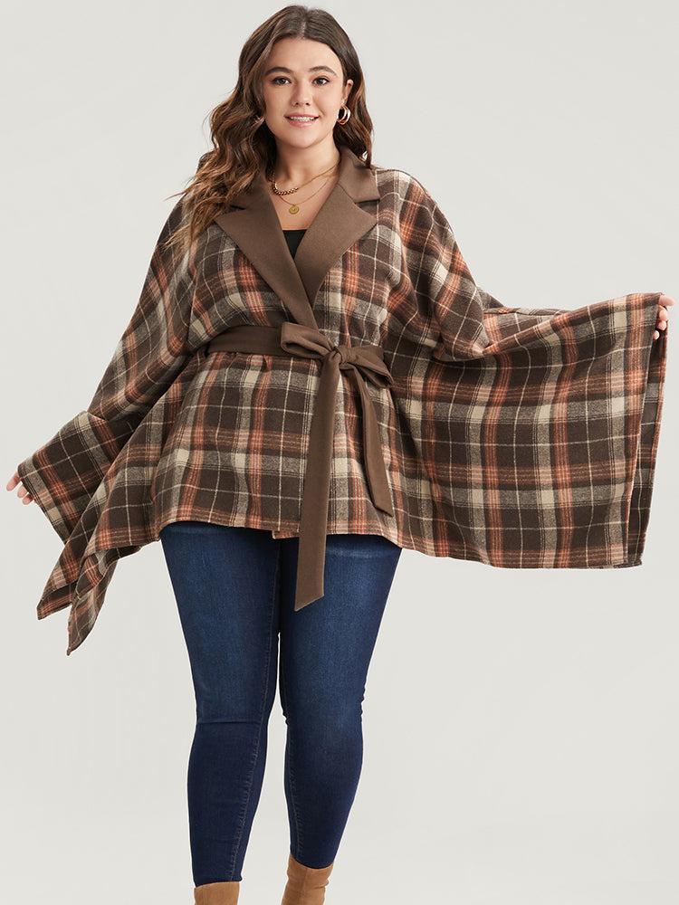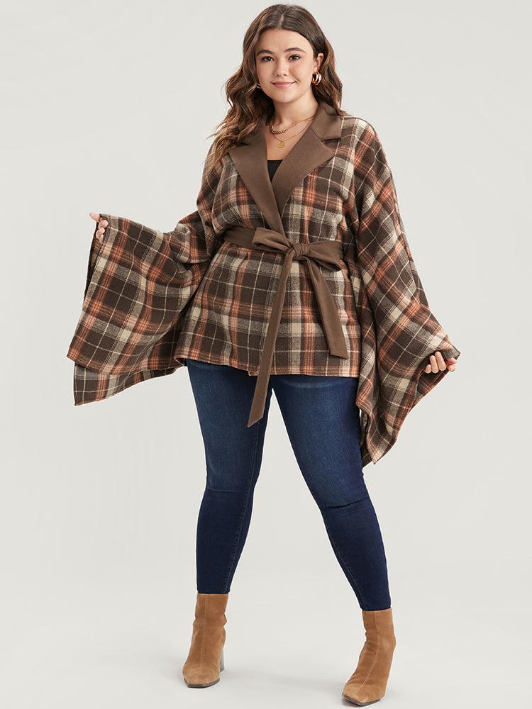 Shop Plaid Contrast Suit Collar Dolman Sleeve Belted Coat now and redefine your style with confidence at BloomChic. Tailored for mid and plus-size women. This trendy Outerwear Women, sizes 10-30. Season:Winter;Color:DarkBrown;Details:Patchwork, Belted;Pocket:No-pocket;Belt:Belt;Lining:No-lining