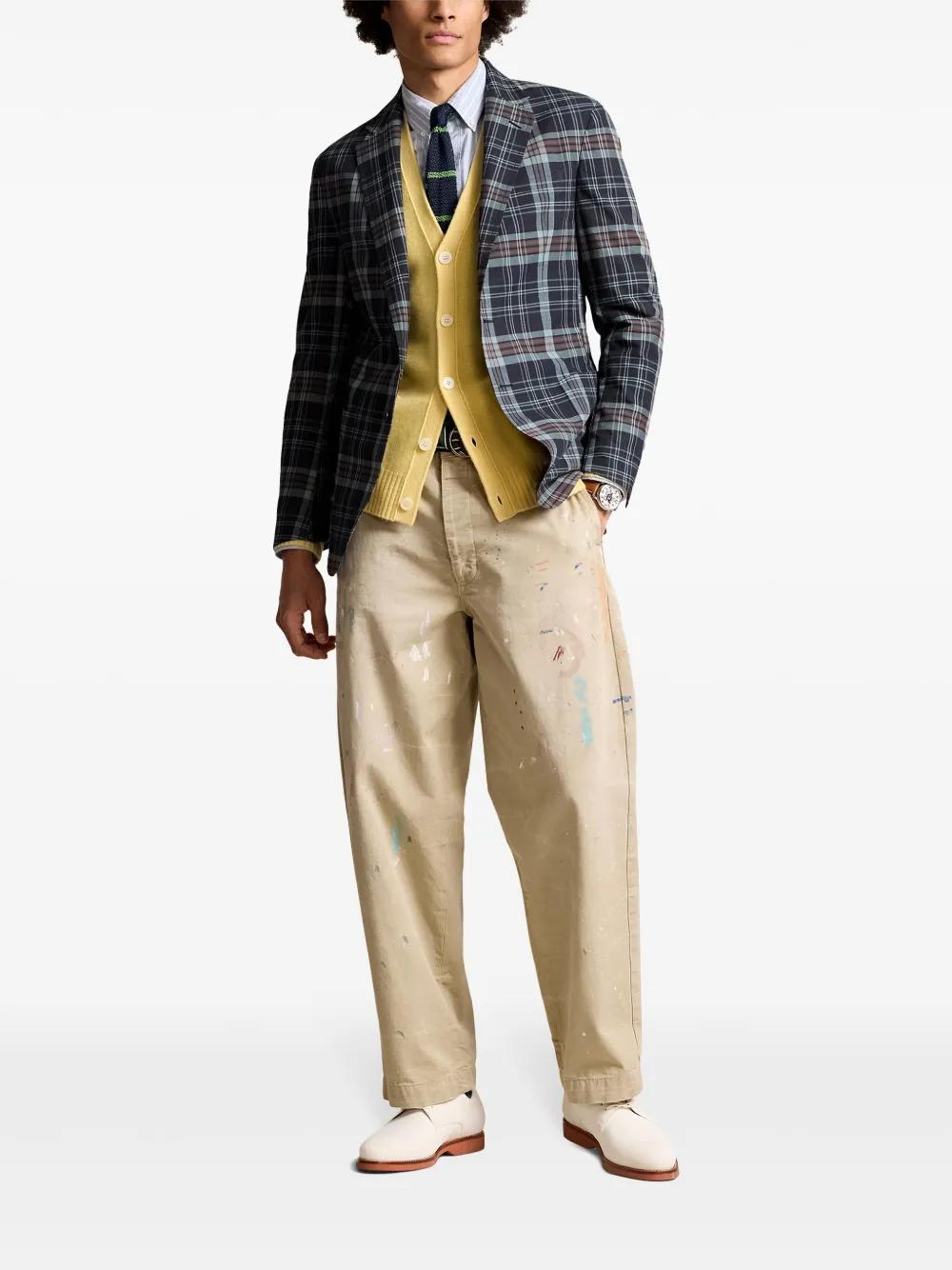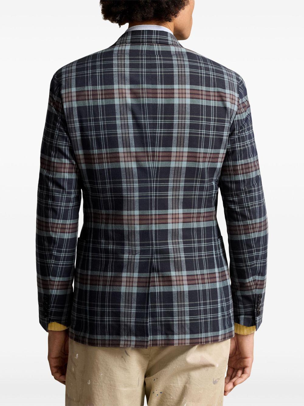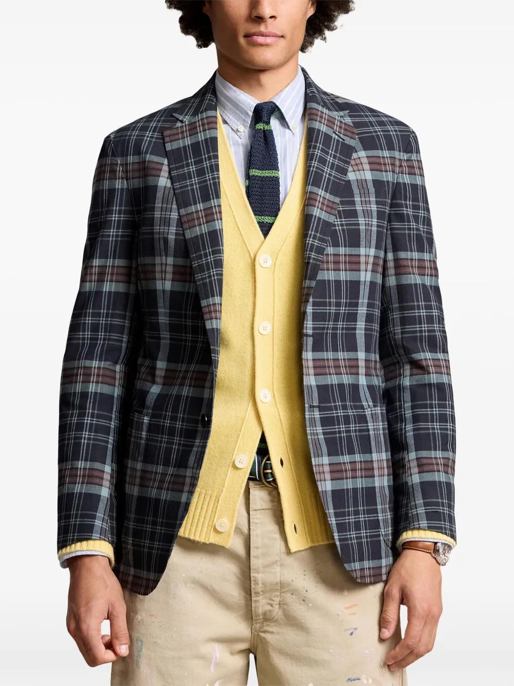 Shop Polo Ralph Lauren Plaid Cotton Blazer In Blue from 600+ stores, starting at $702. navy blue/burgundy/light blue cotton plaid check pattern notched lapels front button fastening long sleeves buttoned cuffs chest welt pocket two side patch pockets straight hem